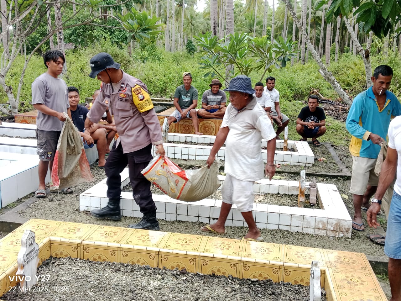 Kehadiran Aipda Ismail bukan sekadar untuk memantau, tetapi ia juga terlibat langsung dalam proses pengerjaan. Ia membantu warga sejak pagi hingga proses pengecoran makam selesai dilakukan.