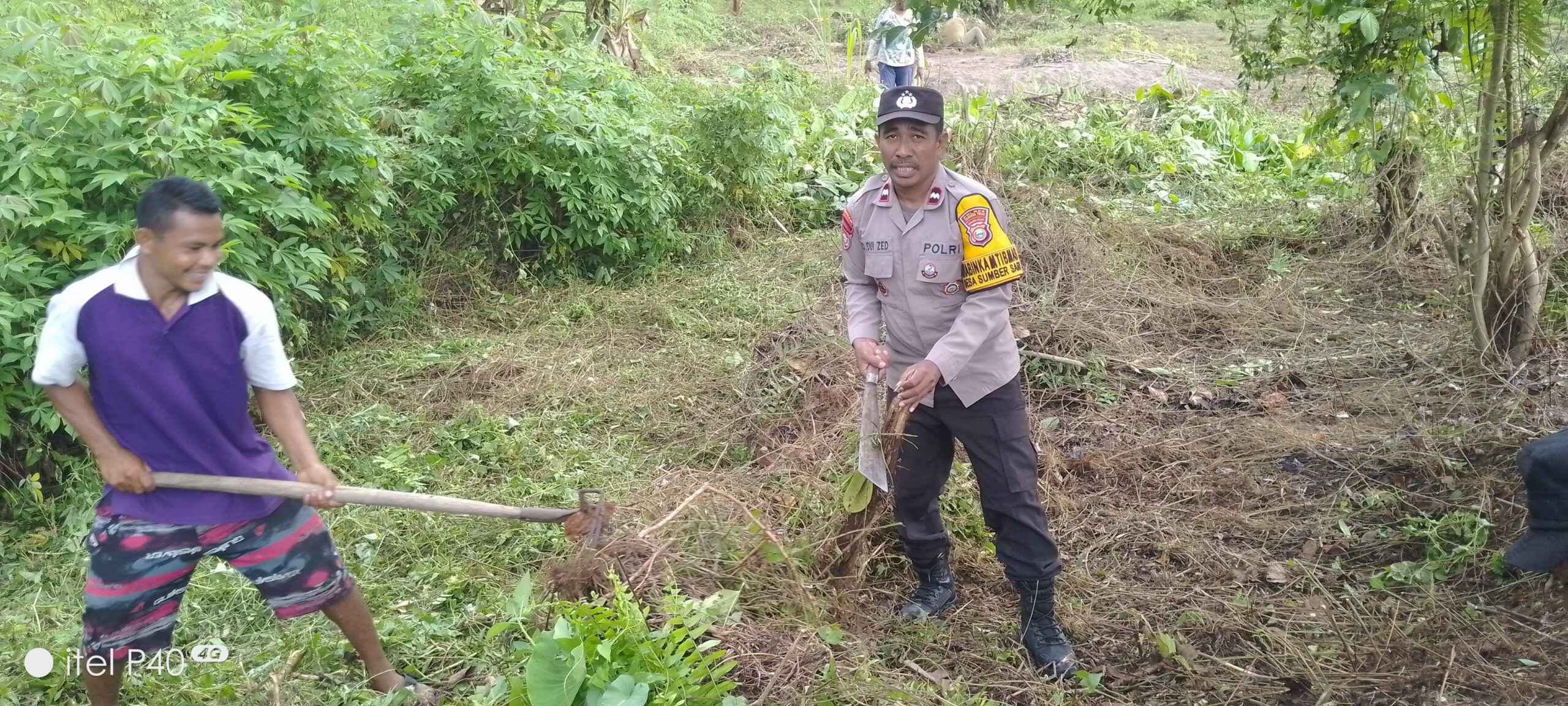 “Kehadiran Bhabinkamtibmas disambut hangat oleh warga. Selain memberikan rasa aman, personel juga ikut membantu membersihkan kebun agar tetap terawat dan bermanfaat secara optimal,” ujar Ipda Hatab