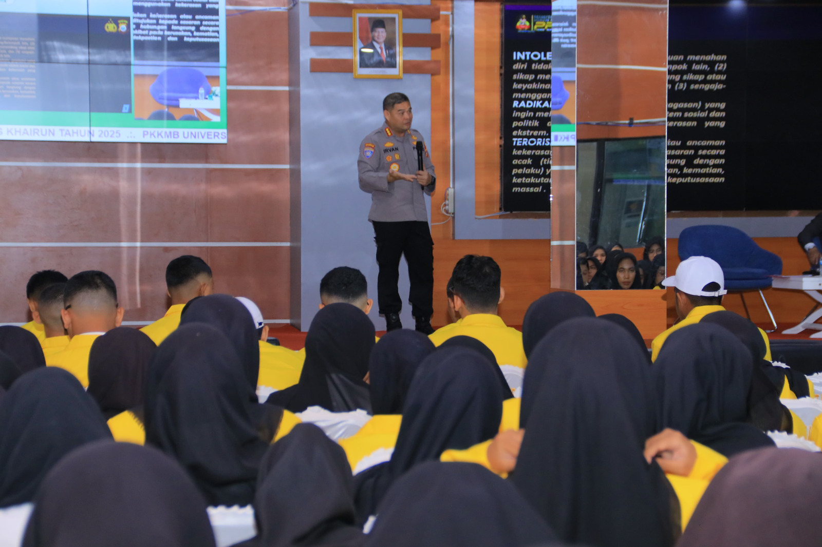 Dalam upaya mencegah penyebaran paham radikalisme dan sikap intoleransi di tengah masyarakat, Polda Maluku Utara yang diwakili oleh Direktur Pembinaan Masyarakat (Dirbinmas) Kombes Pol. Moch. Irvan, S.I.K., menggelar kegiatan sosialisasi dan edukasi kepada mahasiswa baru Universitas Kahirun yang bertempat di Aula Nuku, Unkhair, Kelurahan Gambesi, (9/8) sabtu kemarin.