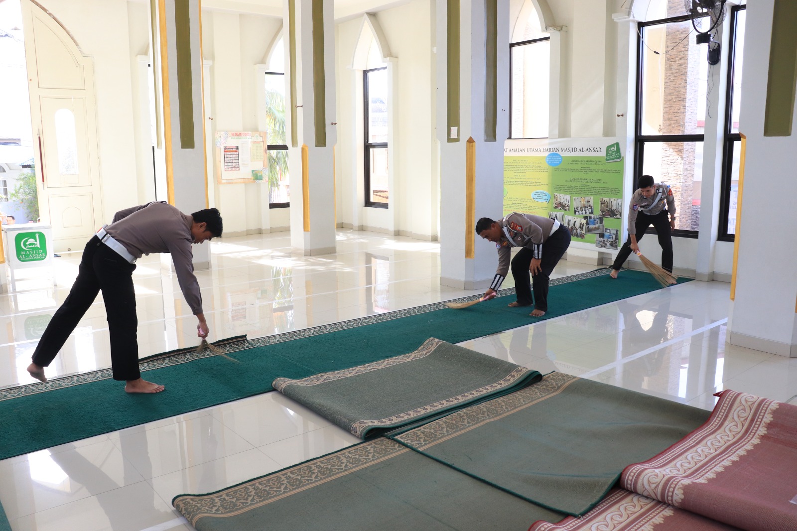 “Kami membersihkan area masjid, baik di bagian dalam maupun luar, agar jamaah dapat beribadah dengan lebih nyaman,” ujar Kombes Pol Doni.