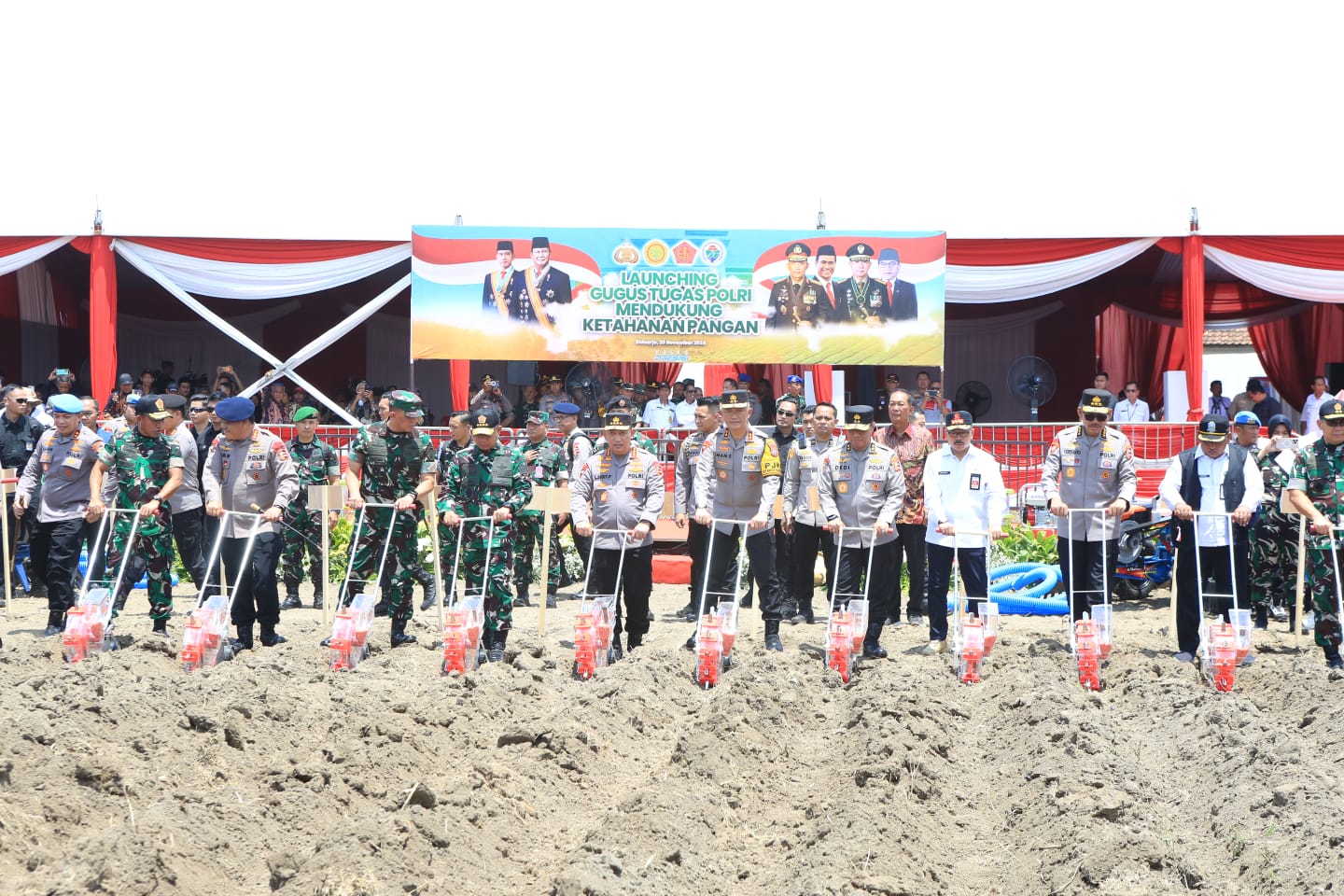 Acara diawali dengan paparan Ketua Pelaksana Gugus Tugas Polri Irjen Dedi Prasetyo. Kemudian Jenderal Sigit bersama Jenderal TNI Agus menekan tombol sebagai tanda dimulainya Launching Gugus Tugas Polri dalam mendukung ketahanan Pangan. Turut hadir Menteri Pertanian dan Menteri Desa/PDT Yandri Susanto yang hadir di Polda Banten.