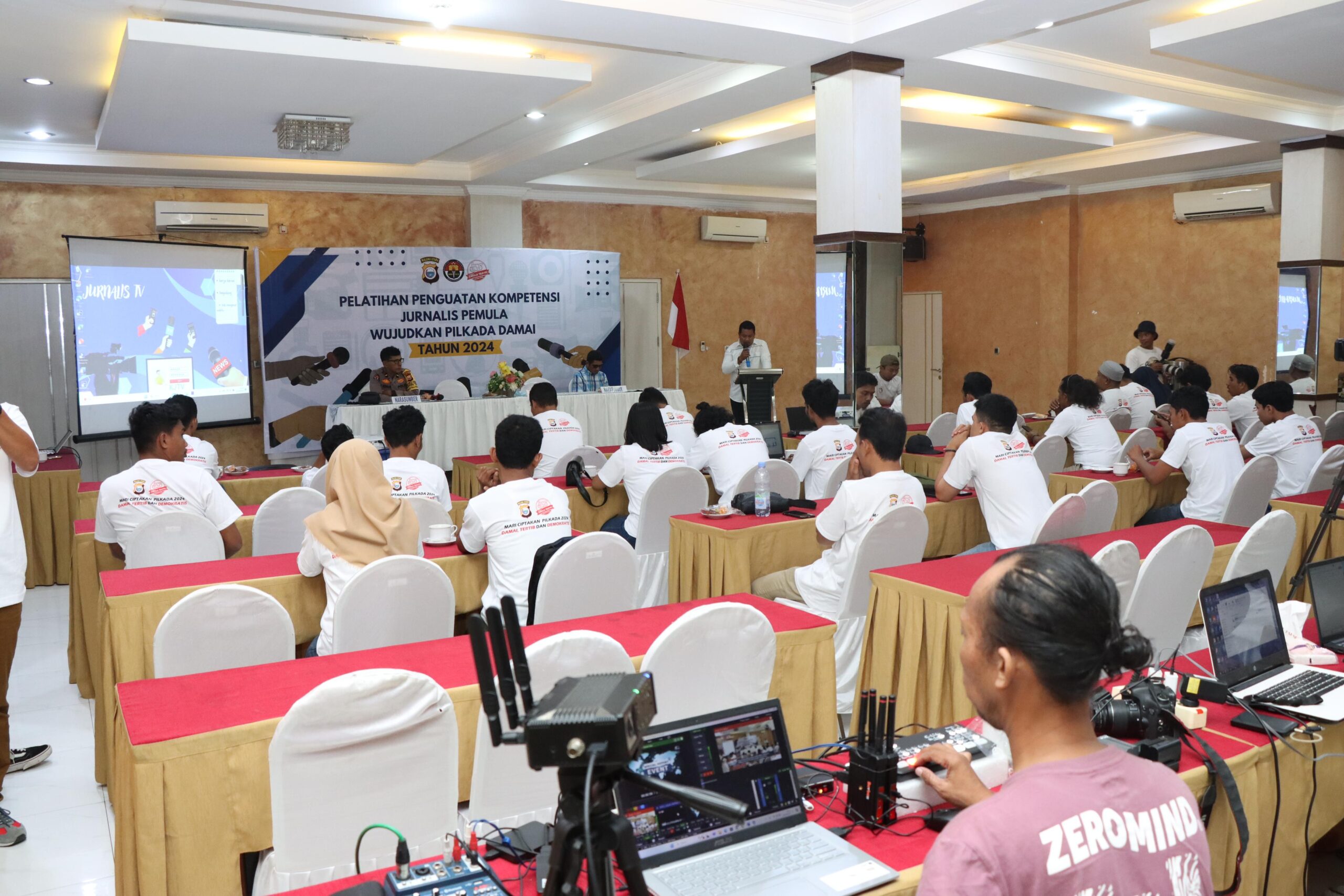 Kepolisian Daerah Maluku Utara melalui Bidhumas berkolaborasi dengan Komunitas Jurnalis Televisi Maluku Utara menggelar kegiatan pelatihan penguatan kompetensi jurnalis pemula wujudkan pemilu damai tahun 2024, yang bertempat di Royal Resto Ternate, Rabu (2/10).