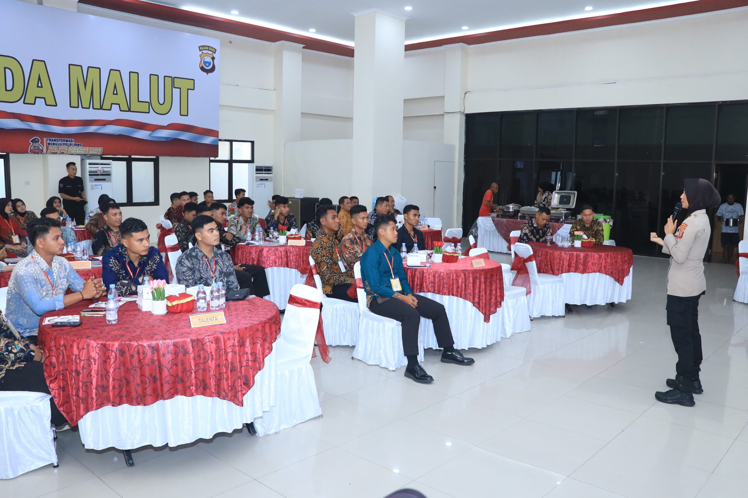 Hari kedua pelaksanaan kegiatan Manajemen Talenta Bintara Polri, Iptu Masqun Abdukish, S.H., M.Si., yang menjabat sebagai Paur Produk Kreatif Subbid Multimedia Bidhumas Polda Malut, ditunjuk sebagai narasumber. Pada Kamis, (19/9/2024), bertempat di Aula Kieraha Polda Malut.
