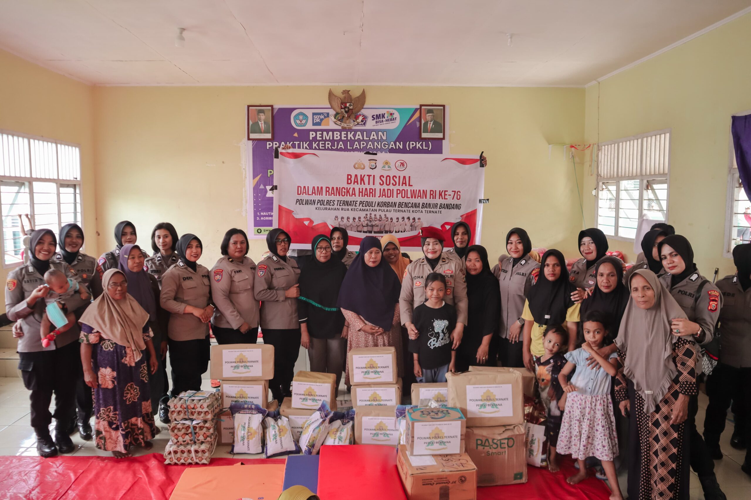 Ternate – Dalam rangka memperingati Hari Ulang Tahun Polisi Wanita (Polwan) ke-76, Polwan Polres Ternate melaksanakan bakti sosial dengan memberikan bantuan sembako dan kegiatan trauma healing kepada warga Kelurahan Rua yang terdampak banjir bandang. Rabu (28/8/24).