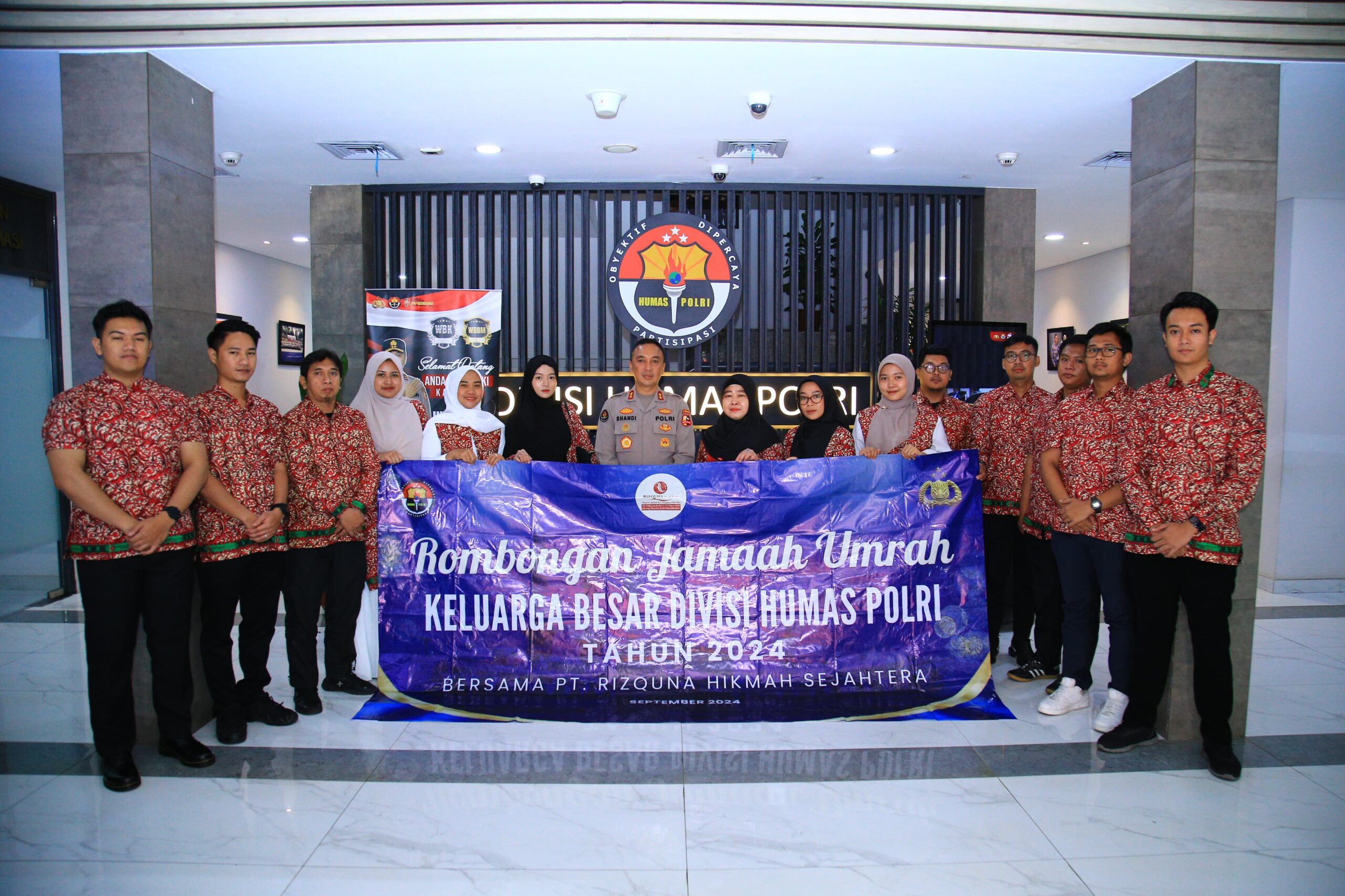 Jakarta. Kepala Divisi Hubungan Masyarakat (Kadiv Humas) Polri Irjen. Pol. Sandi Nugroho memberangkatkan 15 anggota beserta keluarganya untuk melaksanakan ibadah umroh ke Tanah Suci. Pemberangkatan ini dalam rangka Hari Jadi ke-73 Humas Polri yang akan diselenggarakan 30 Oktober 2024.