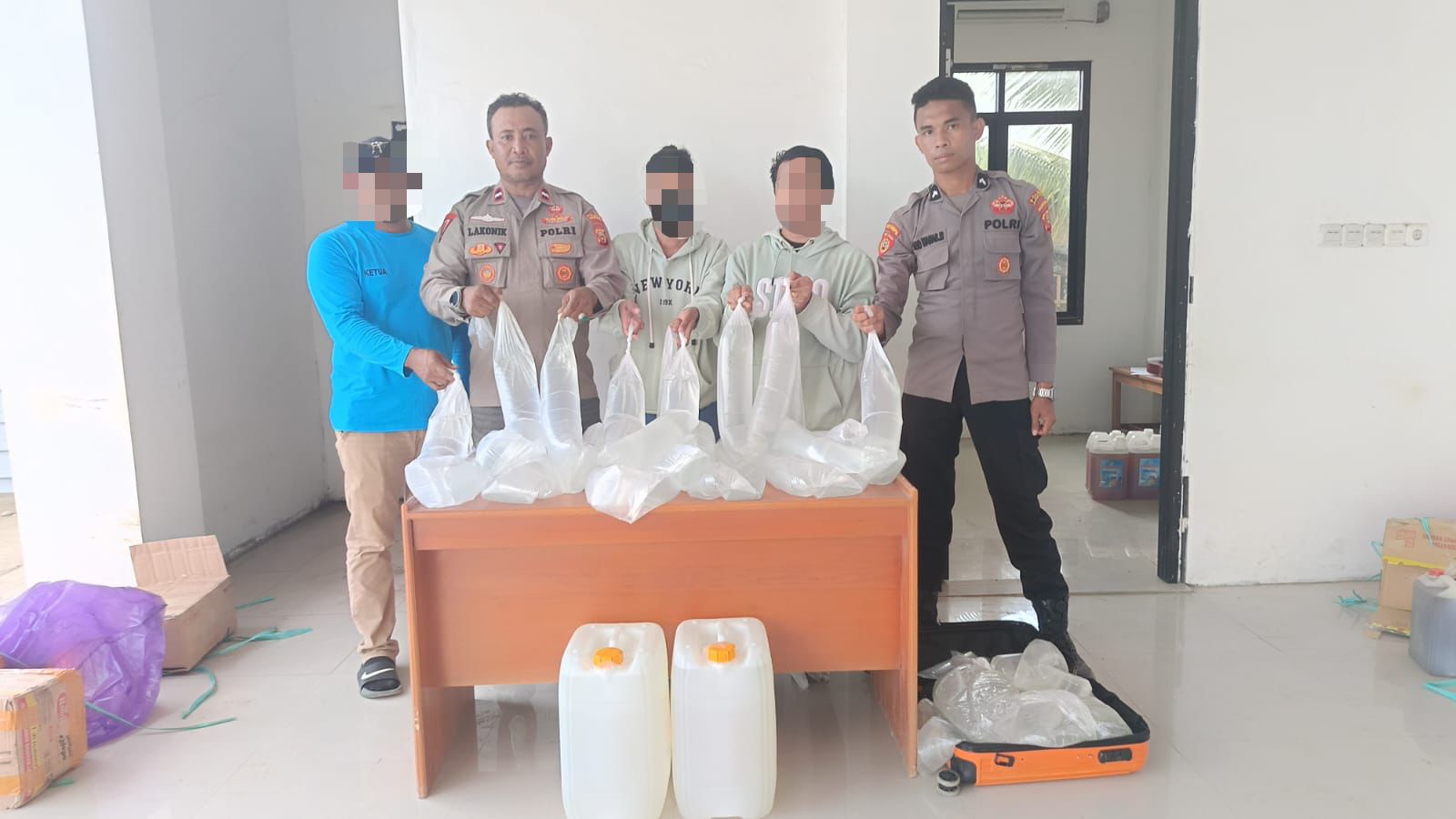 Halmahera Tengah – Menjelang perayaan Natal dan Tahun Baru (Nataru), petugas Pos KP3 di Pelabuhan kembali menunjukkan komitmennya dalam memberantas peredaran minuman keras ilegal. Dalam kegiatan pemeriksaan rutin yang dipimpin langsung oleh Danpos KP3, Aipda Ali Imran S. Bahri, S.Sos., S.H., petugas berhasil mengamankan puluhan liter minuman keras tradisional jenis cap tikus yang dibawa oleh penumpang kapal serta beberapa barang bukti tanpa pemilik.
