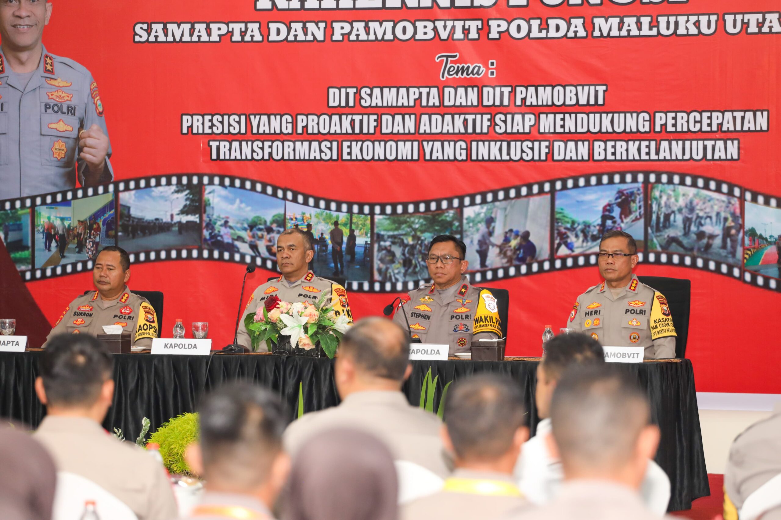 Kegiatan ini dihadiri oleh Wakapolda Maluku Utara Brigjen Pol. Stephen M. Napiun, S.I.K., S.H., M.Hum., Irwasda Polda Maluku Utara Kombes Pol. Murry Miranda, S.I.K, serta Pejabat Utama Polda Maluku Utara, dan para personel Dit Samapta dan Pamobvit Polda Maluku Utara beserta jajarannya.