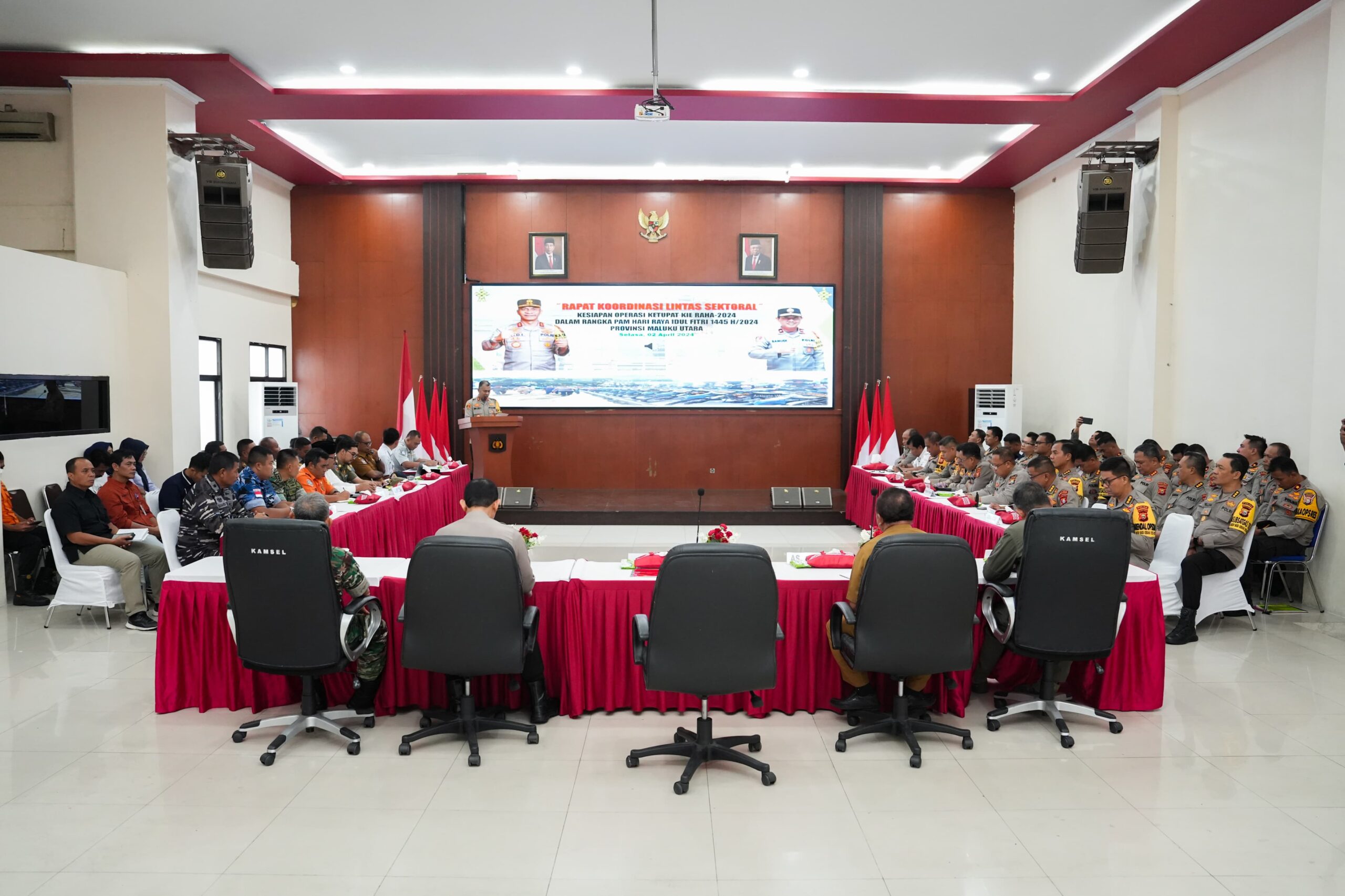 Kapolda Maluku Utara Irjen Pol. Midi Siswoko, S.I.K memimpin rapat koordinasi lintas sektoral untuk persiapan “Operasi Ketupat Kie Raha Tahun-2024” di Aula Kieraha Polda Malut. Pada Hari Selasa (02/April/2024)