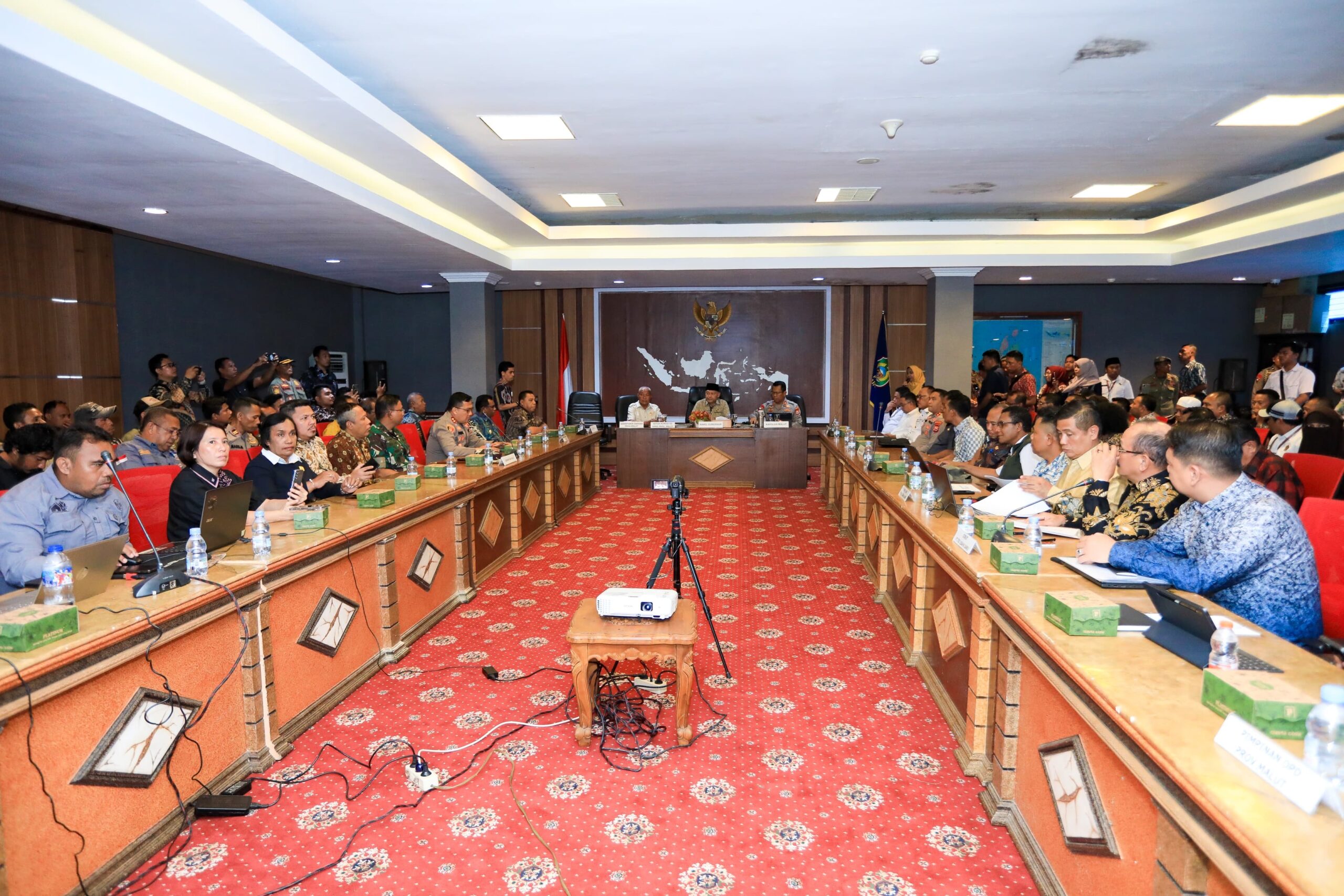 HUMAS POLDA MALUT – Kapolda Maluku Utara Irjen Pol Waris Anggono menghadiri pertemuan antara Wakil Gubernur Maluku Utara, Sarbin Sehe, dan jajaran Forum Komunikasi Pimpinan Daerah (Forkopimda) Kabupaten Halmahera Barat dan Halmahera Utara.