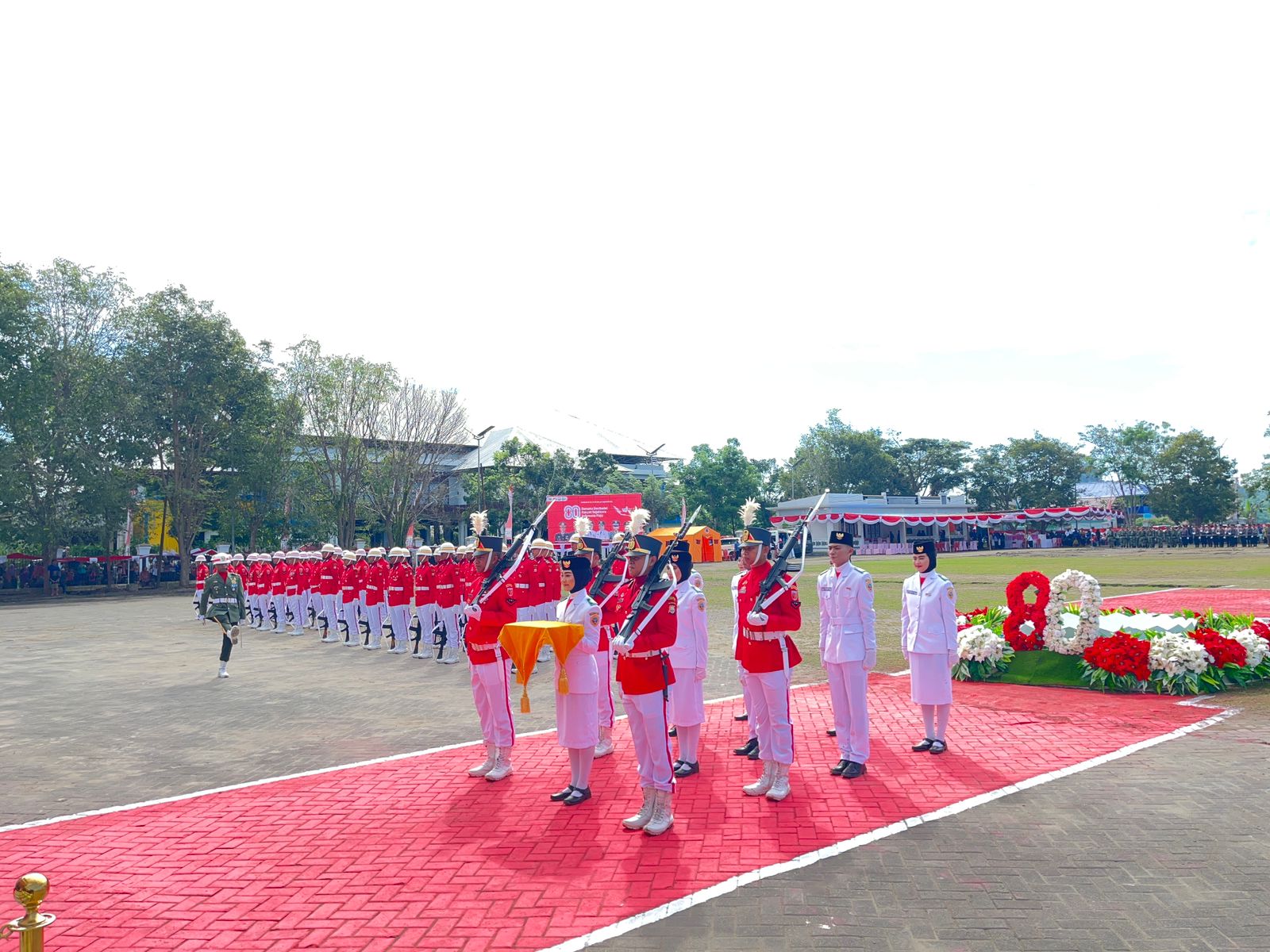 Bupati Halmahera Tengah Dr.Ir.Ikram M.Sagadji M.Si.bertindak selaku inspektur upacara, sementara Kapolres Halteng bersama seluruh Forkopimda hadir sebagai undangan. Acara yang dilaksanakan di lapangan Pendopo Falcino Weda.