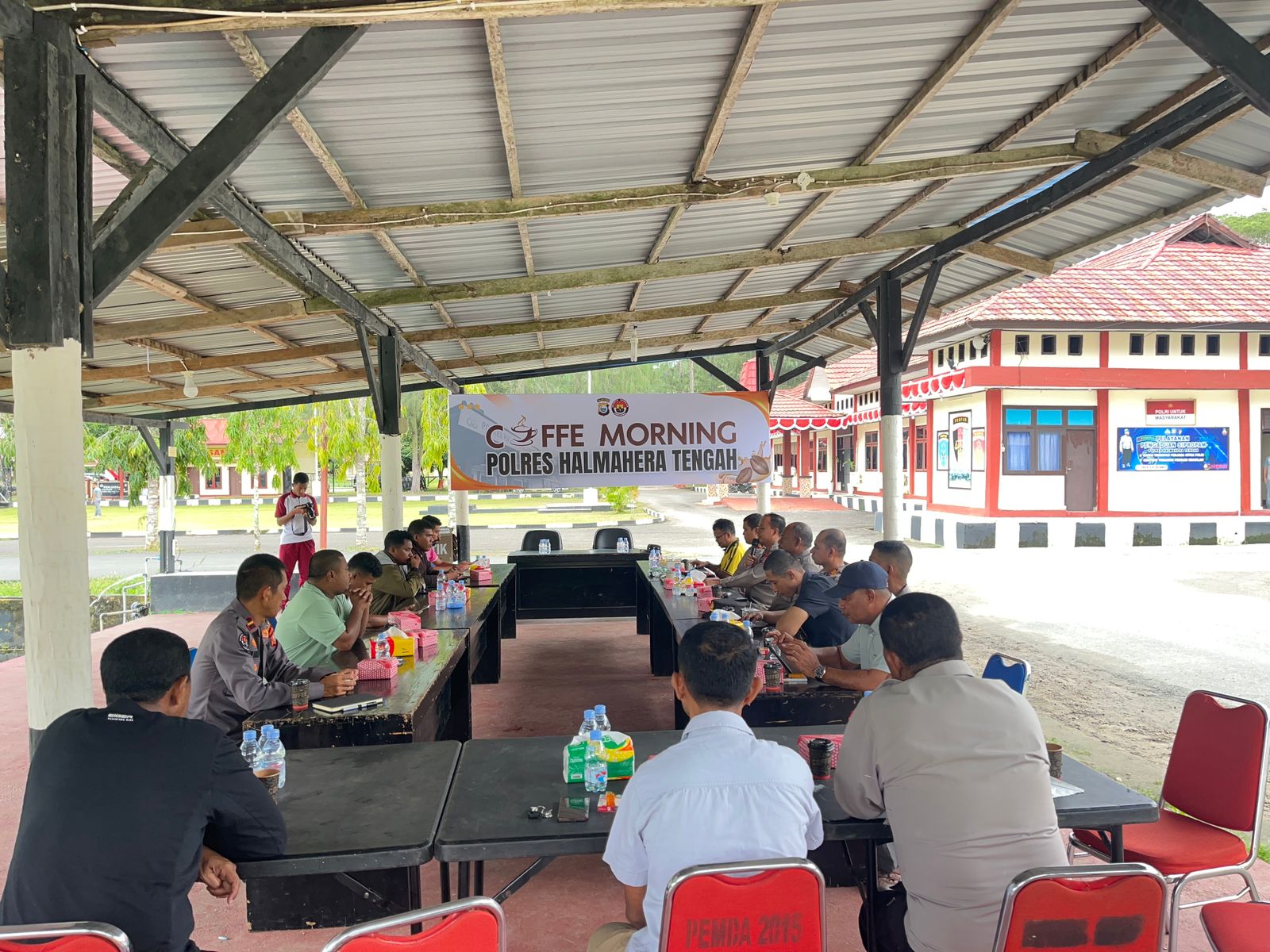 Weda – Dalam upaya mempererat sinergitas antara kepolisian dan insan pers, Kapolres Halteng AKBP Fiat Dedawanto S.Pd.T.,S.I.K.,M.H.Samuel menggelar acara Coffee Morning bersama para jurnalis dan media mitra, Sabtu (23/8/2025).