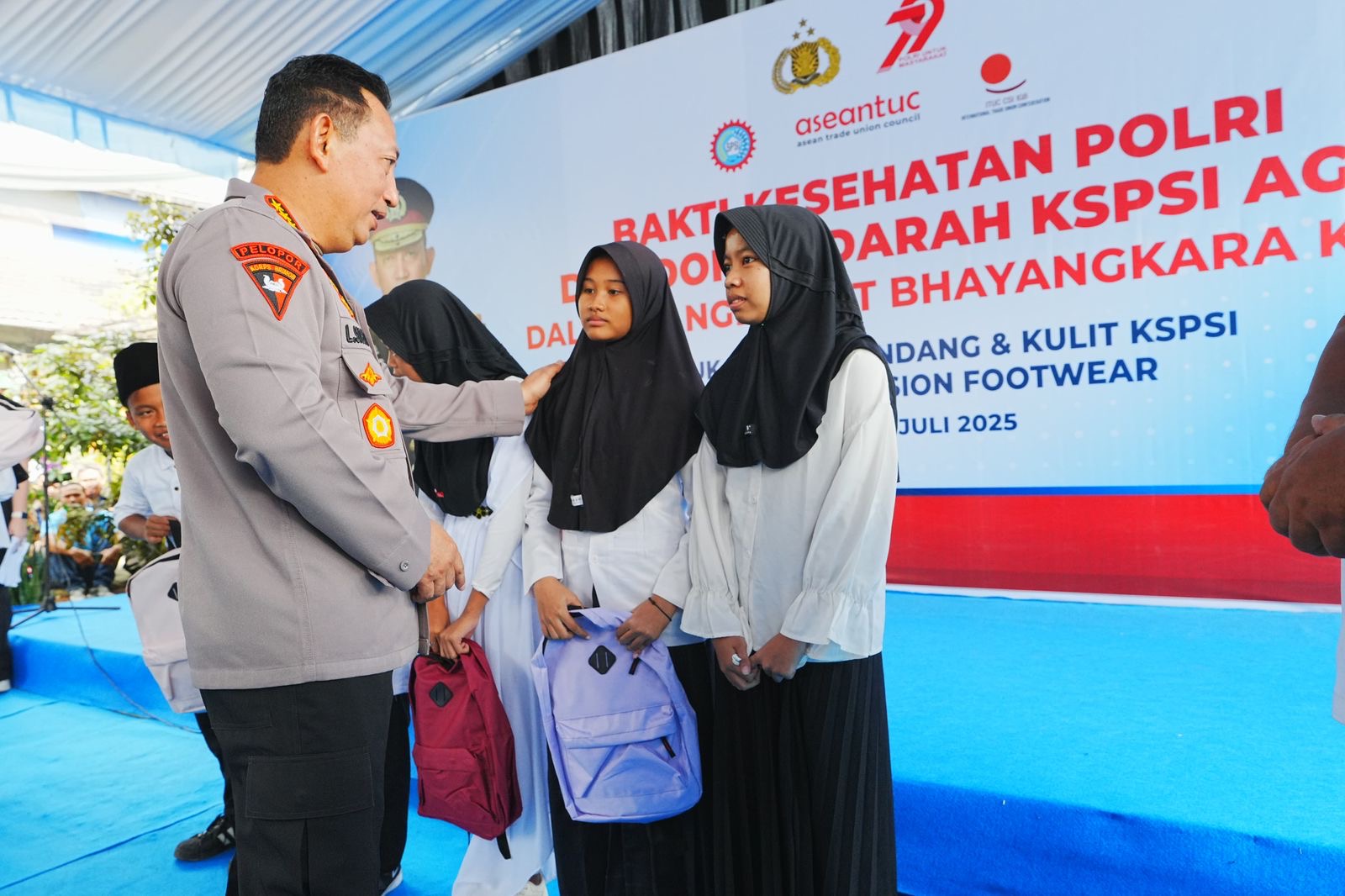 Banten – Kapolri Jenderal Listyo Sigit Prabowo menghadiri kegiatan bakti kesehatan (Baktikes) Polri dan donor Darah KSPSI AGN di Tangerang, Banten, Rabu (2/7/2025).