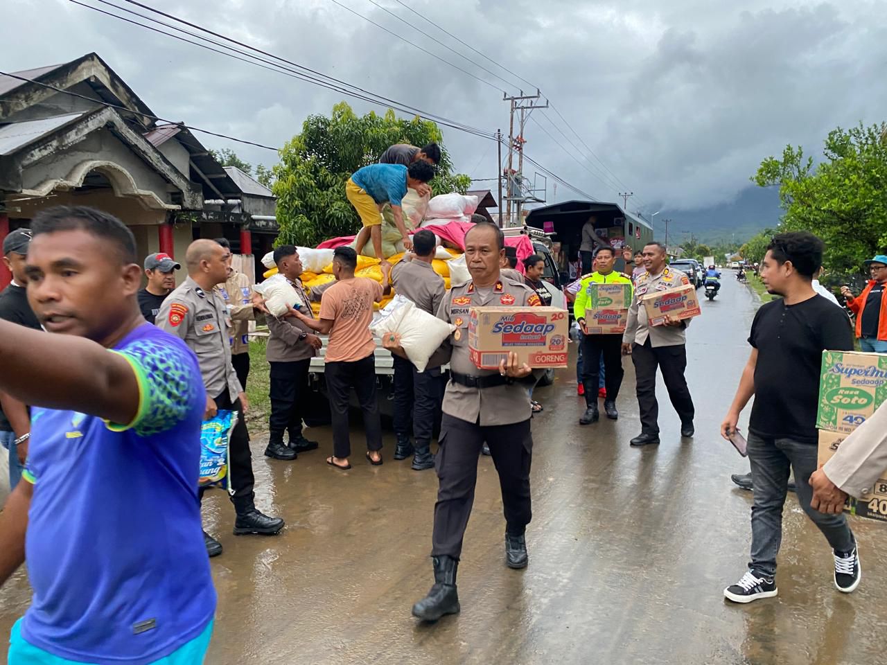 Beberapa anggota juga terlihat membantu warga yang membutuhkan.