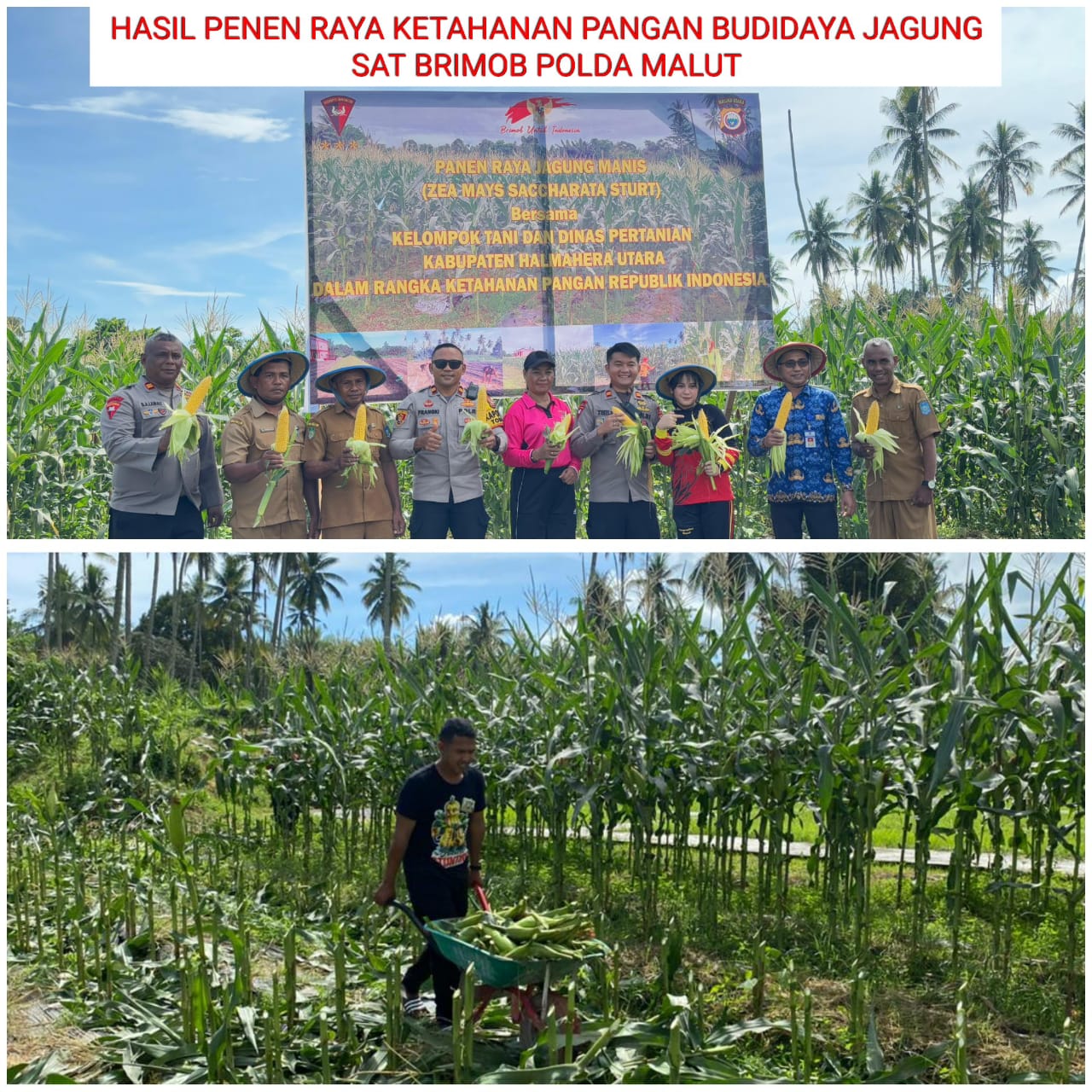 Satuan Brimob Polda Maluku Utara melaksanakan panen raya jagung dan pendistribusian hasil panen kepada masyarakat yang bertempat di Desa Kupa-Kupa, Kecamatan Tobelo Selatan, pada Senin (20/1/2025) Kemarin.