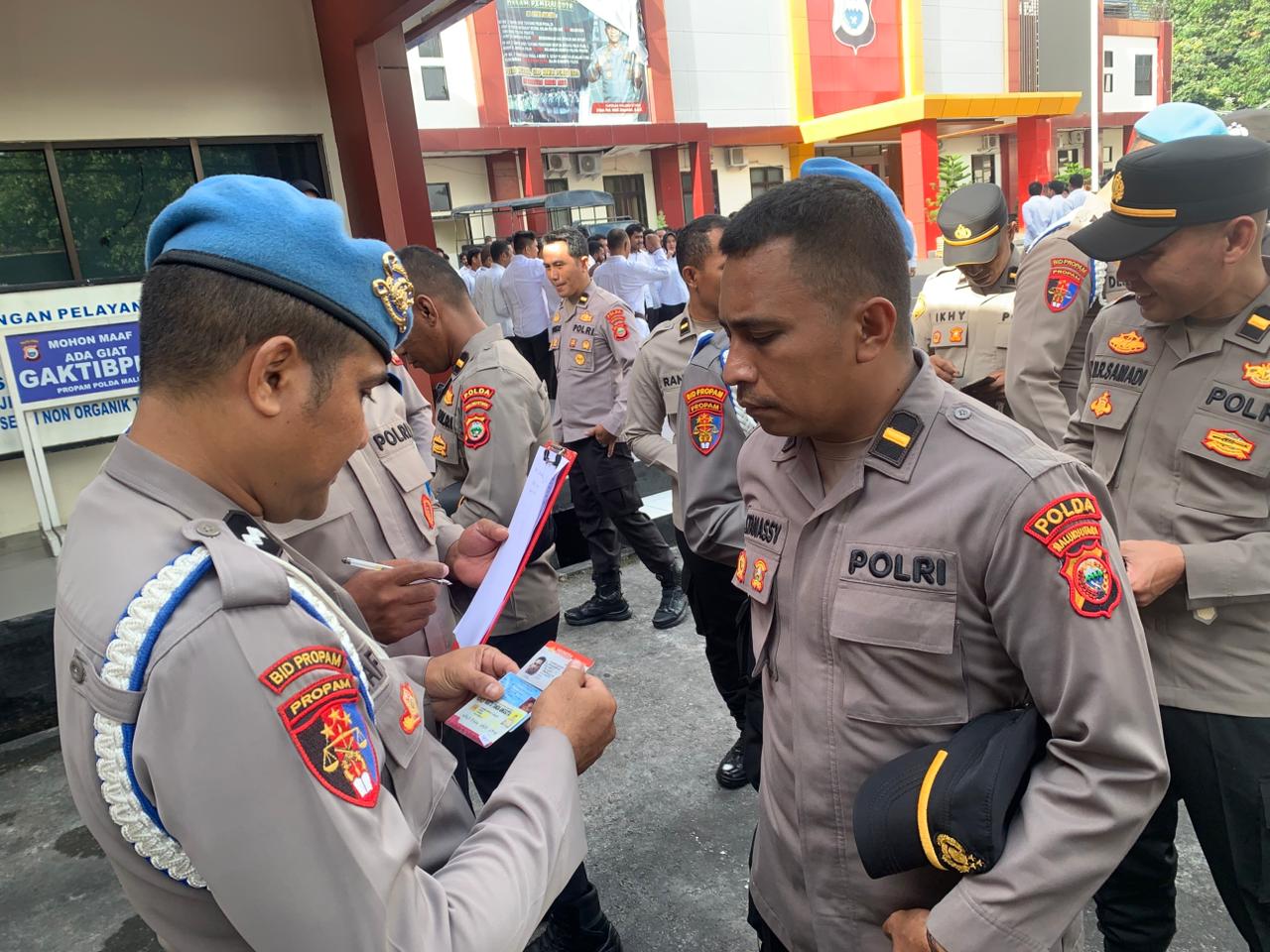 Selain pemeriksaan Urine Bidpropam Polda Malut juga melakukan pemeriksaan kelengkapan identitas diri dan sikap tampang serta pemeriksaan Hendpone terkait penggunaan situs judi Online.