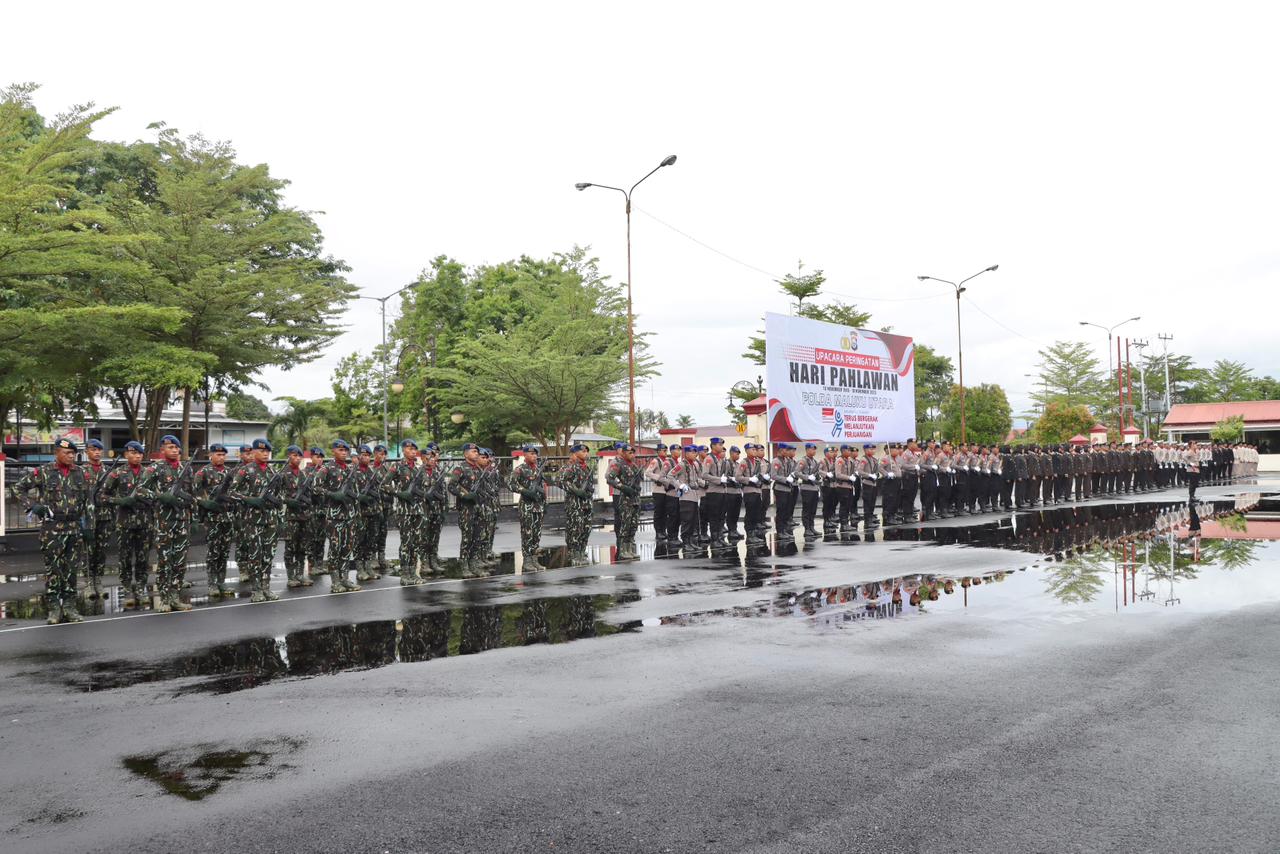 HUMAS POLDA MALUT – Polda Maluku Utara menggelar upacara peringatan Hari Pahlawan tahun 2025 dengan tema “Pahlawanku Teladanku, Terus Bergerak Melanjutkan Perjuangan.” berlangsung di Lapangan Apel Mapolda Malut, Sofifi, Senin, (10/11/2025).
