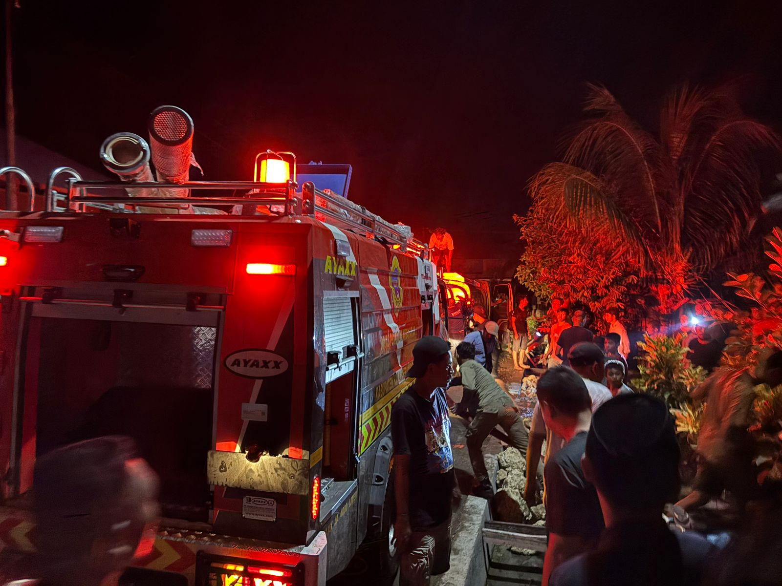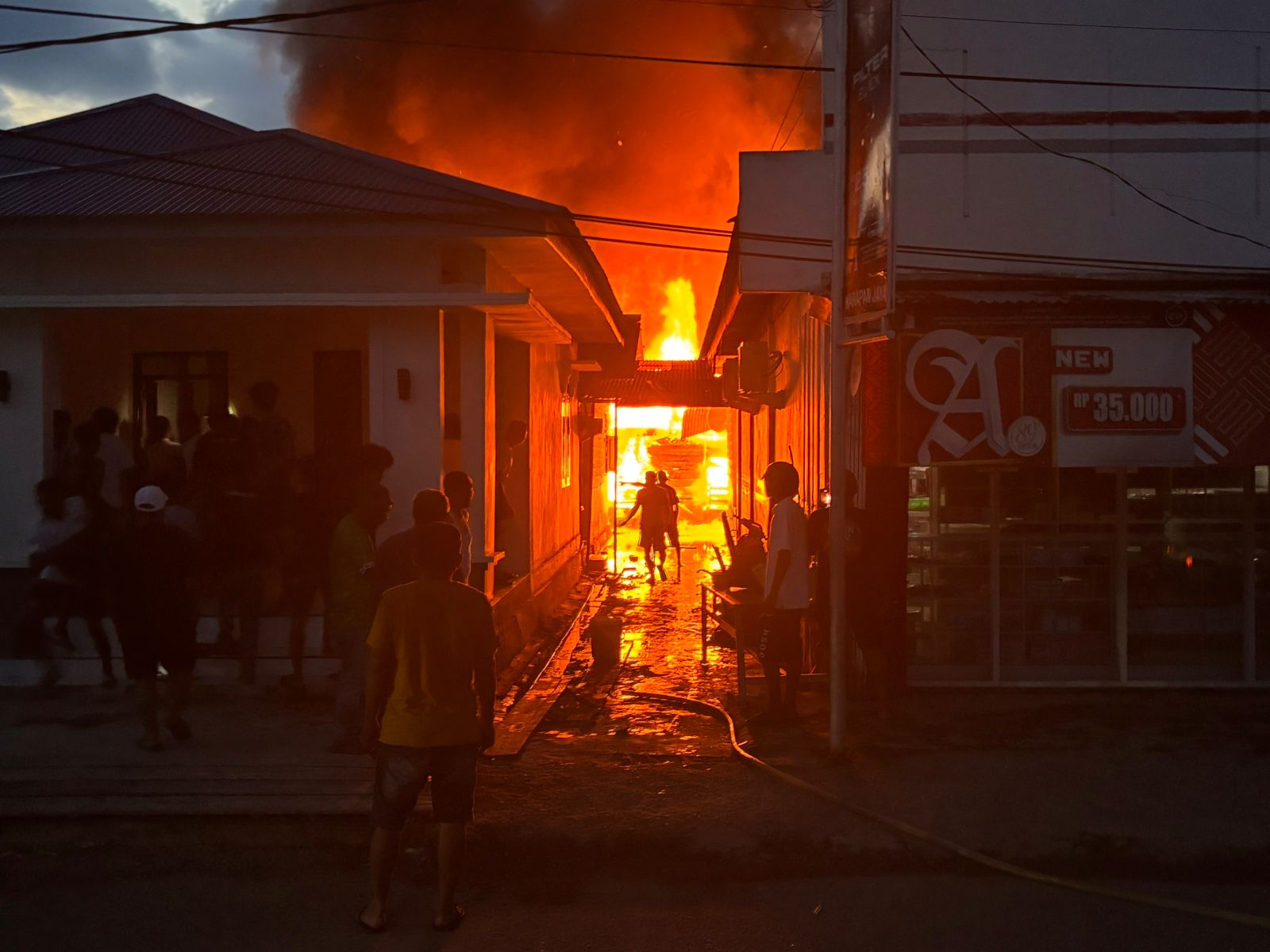 Kebakaran pertama kali diketahui oleh warga sekitar setelah melihat kepulan asap tebal dari salah satu bangunan. Warga kemudian berusaha membantu memadamkan api dengan peralatan seadanya sebelum tim pemadam kebakaran bersama aparat kepolisian tiba di lokasi.