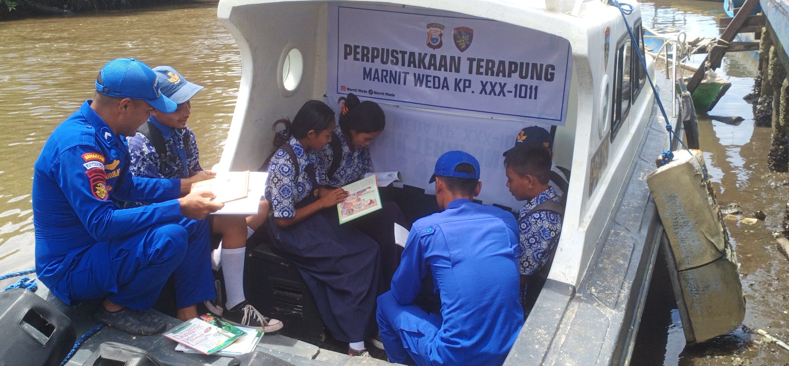 Direktorat Polairud Polda Maluku Utara, melalui Unit Weda KP.XXX-1011 dan KP.XXX-2005, melaksanakan kegiatan Perpustakaan Terapung di Desa Sidanga, Kecamatan Weda, Kabupaten Halmahera Tengah, pada Jumat (16/8/2024).
