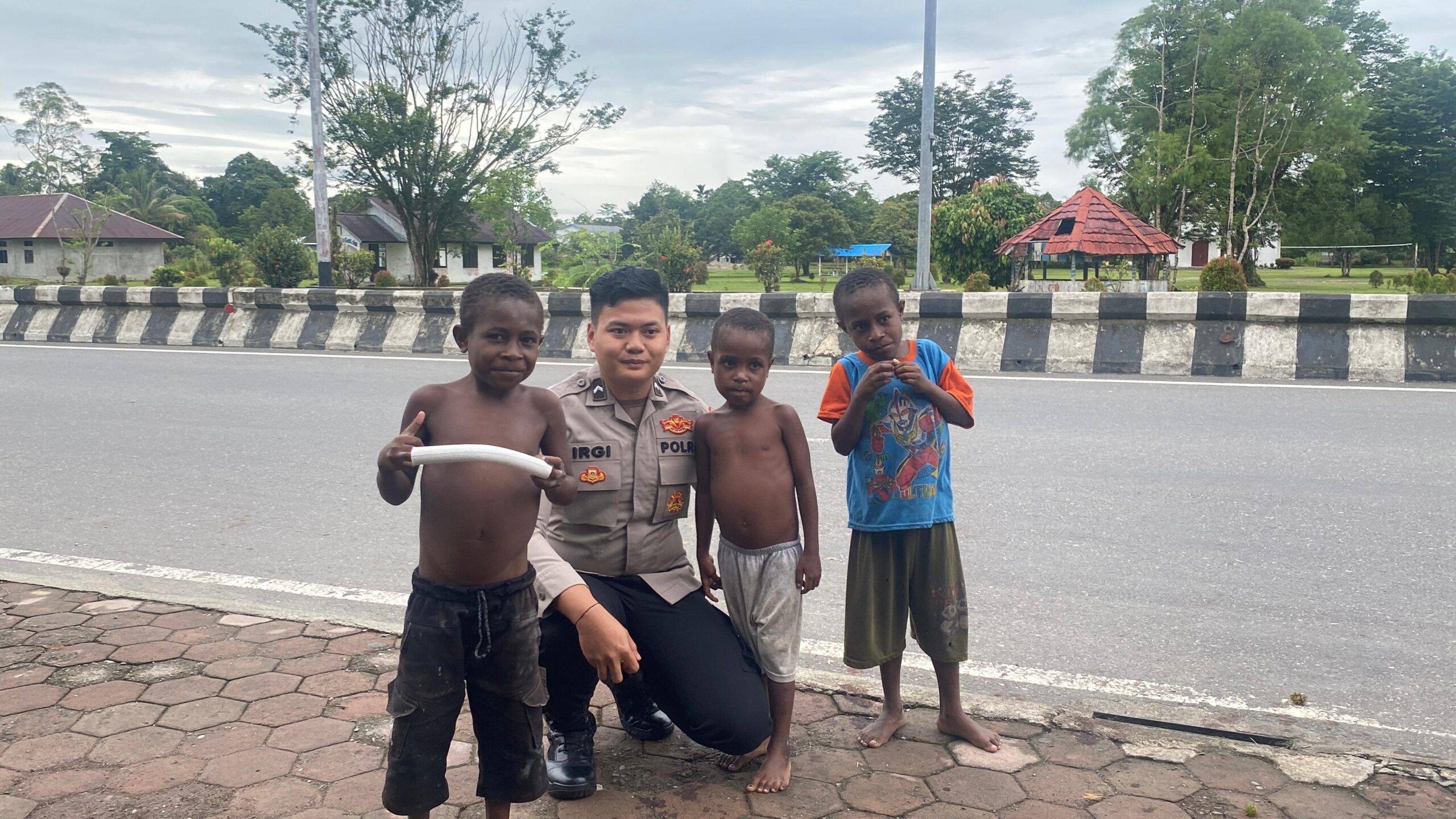 Dua personel yang tergabung dalam Satgas Humas Ops Damai Cartenz-2025, Bripda Irgi Alamsyah yang berasal dari Divhumas Polri dan Bripda Alfesa Hafiz Polda Banten, tampak berinteraksi hangat dengan sejumlah anak-anak Papua. Kegiatan ini dilakukan sebagai bagian dari pendekatan humanis yang mengedepankan nilai kekeluargaan dan pelayanan langsung kepada masyarakat.