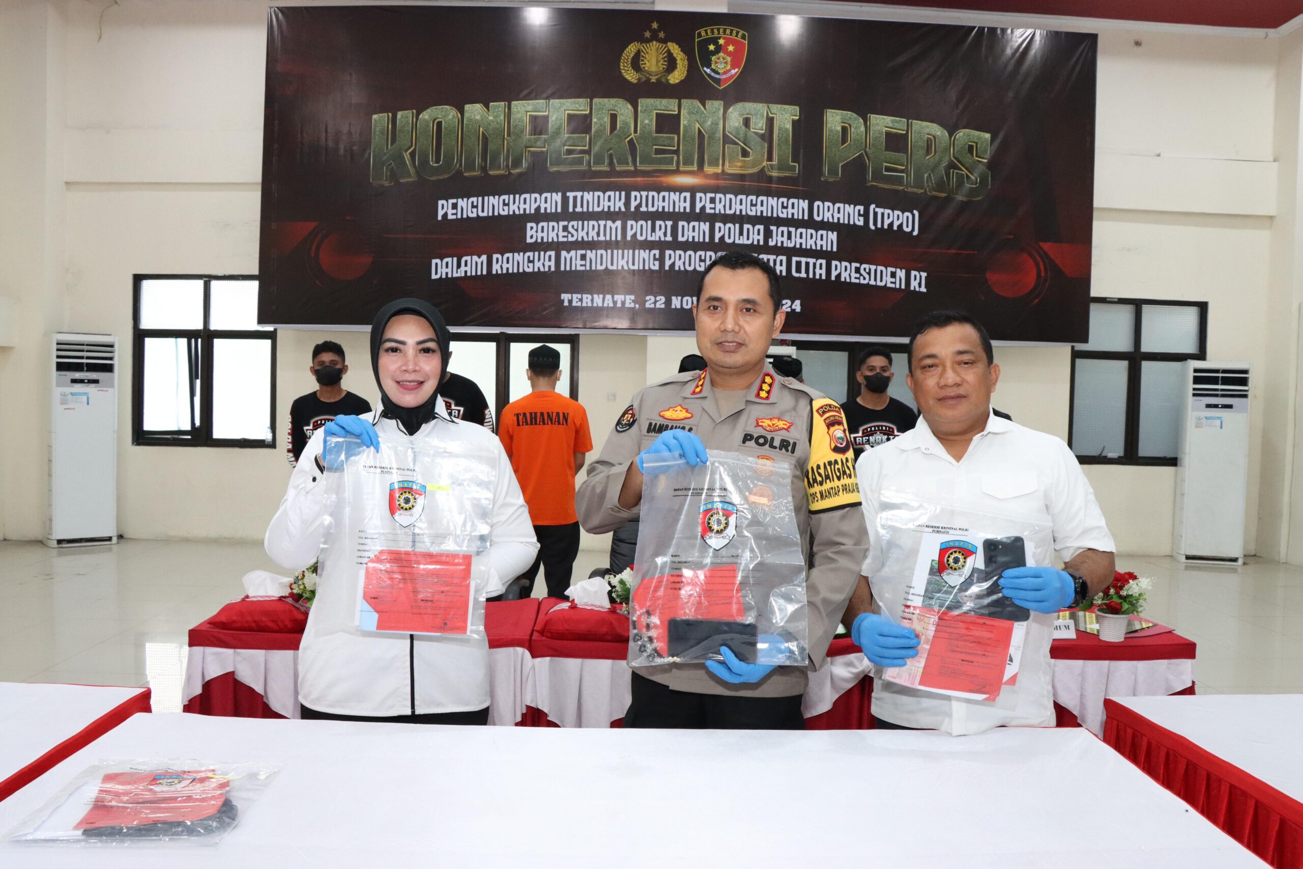 Kepolisian Daerah Maluku Utara melalui Dit Reskrimum Polda Maluku menggelar Konferensi Pers pengungkapan kasus tindak pidana perdagangan orang yang bertempat di Aula Mapolda Malut. Jumat (22/11).