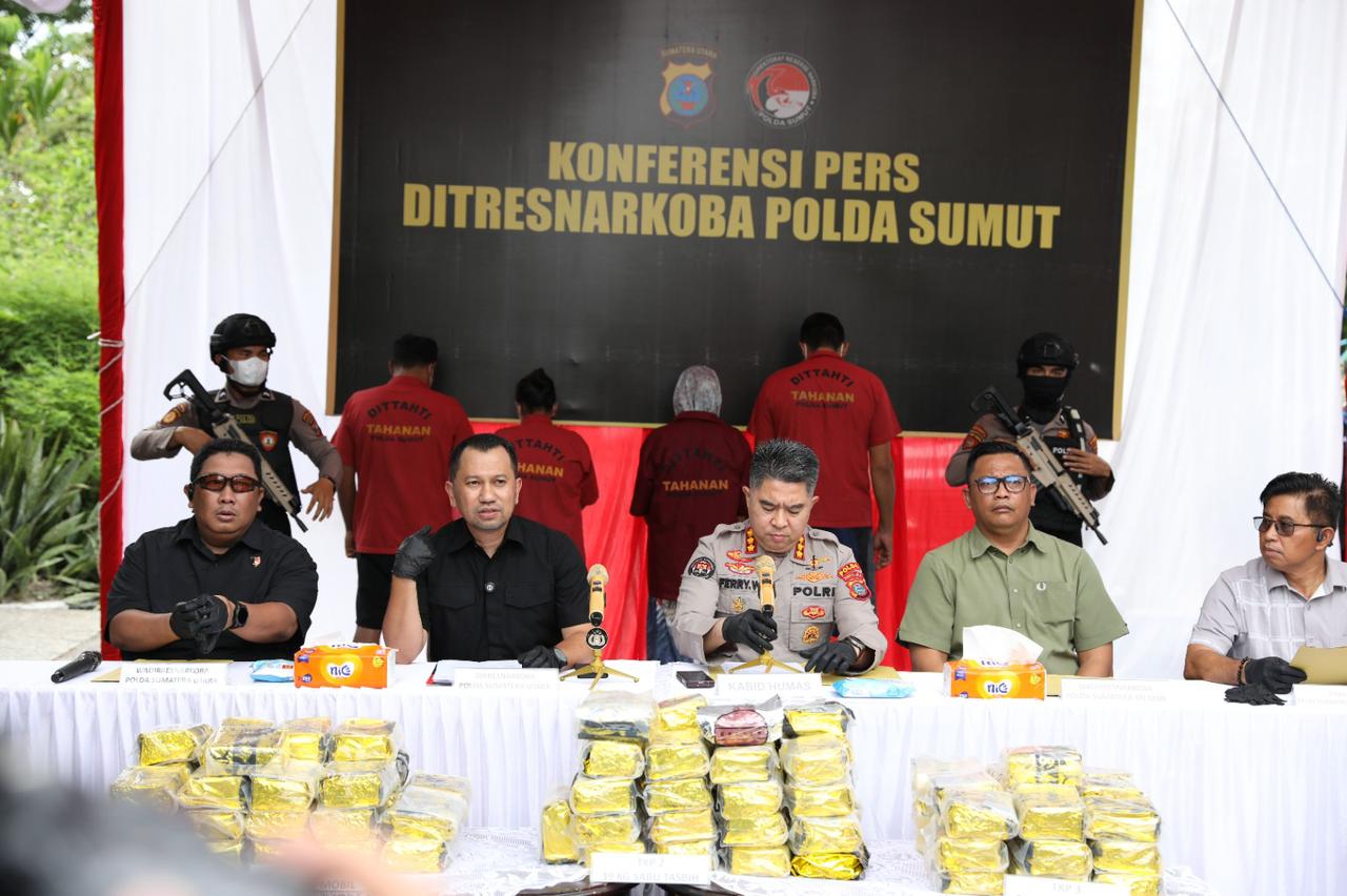 Pengungkapan ini disampaikan dalam konferensi pers di Komplek Tasbih, Medan, Sabtu (17/5/2025), dipimpin Direktur Resnarkoba Polda Sumut Kombes Pol Jean Calvijn Simanjuntak bersama Kabid Humas Kombes Pol Ferry Walintukan dan Wadirresnarkoba.
