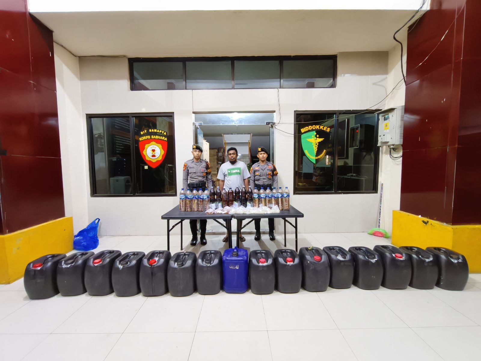 Tim Tipiring Subdit Gasum Direktorat Samapta Polda Maluku Utara berhasil mengamankan minuman keras ilegal dalam operasi rutin di Kelurahan Maliaro, sabtu (10/5).