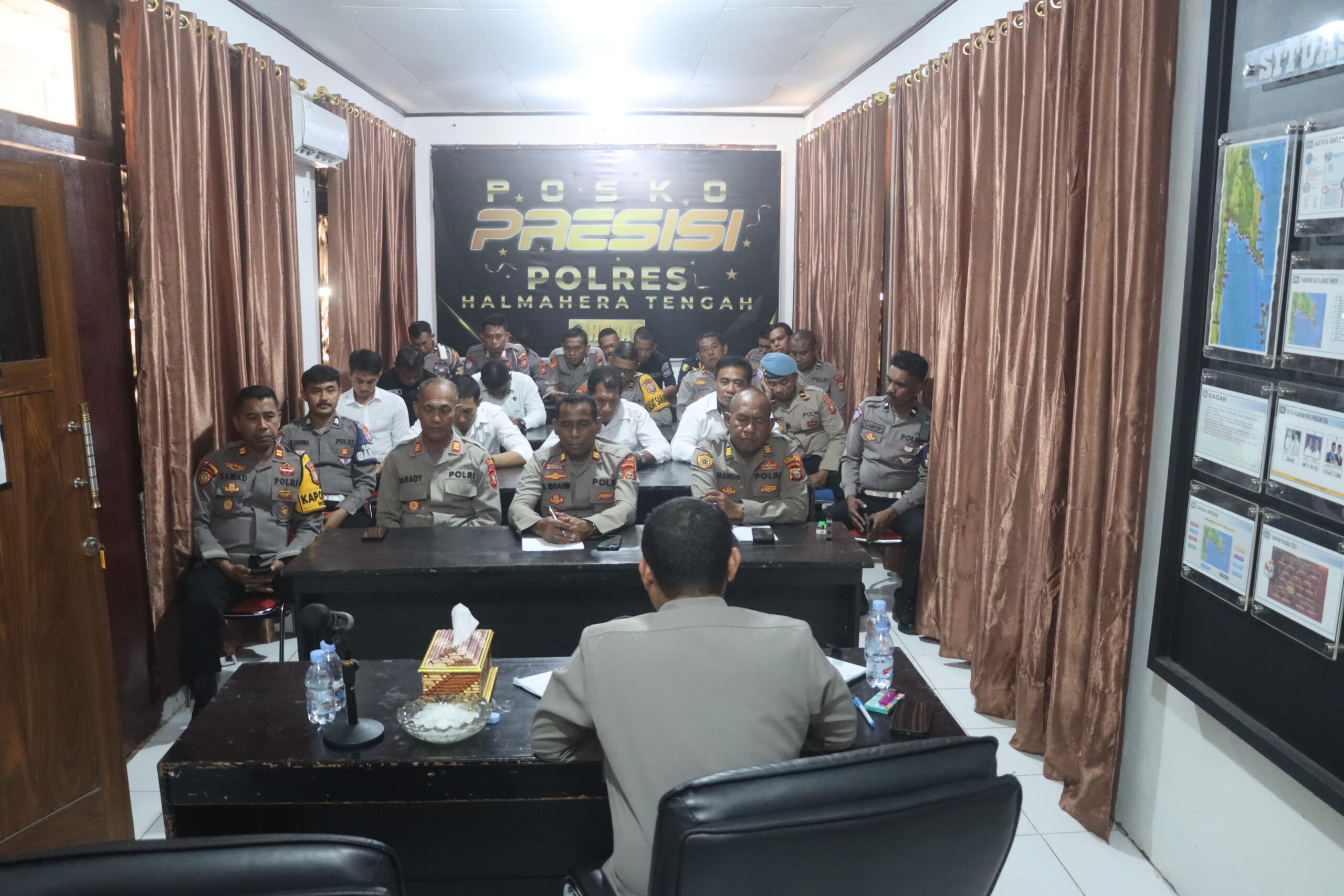 Weda – Polres Halmahera Tengah melaksanakan kegiatan analisa dan evaluasi (Anev) mingguan yang dipimpin langsung oleh Wakapolres Halteng, Kompol Hefrizon, S.Kom., S.I.K., M.M., bertempat di Ruang Vicon Polres Halteng, Senin (22/09/2025).