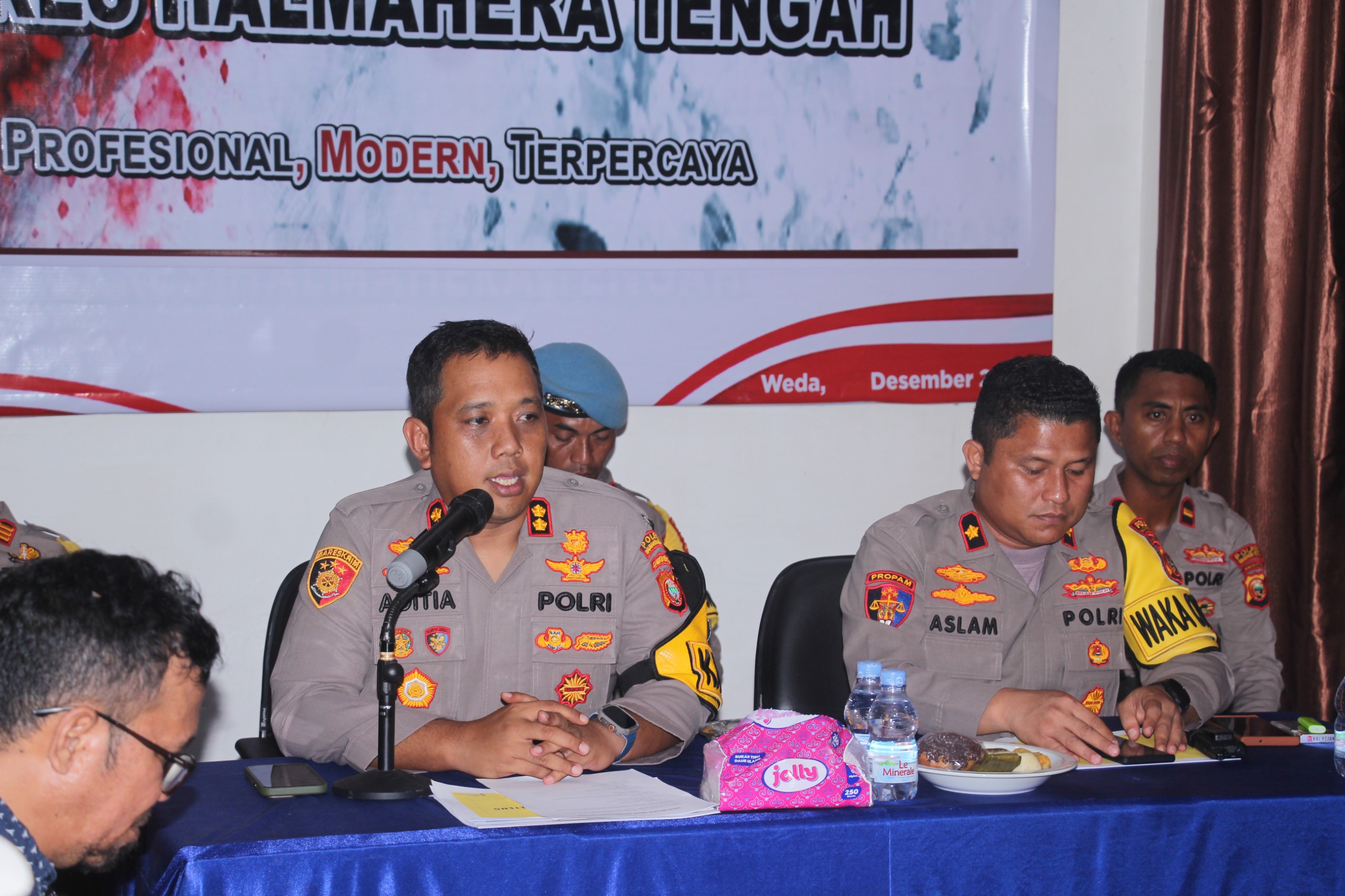 Weda Polres Halmahera Tengah menggelar Press Release akhir Tahun 2024 di ruang Vicon Polres Halteng Selasa (31/12/2024)