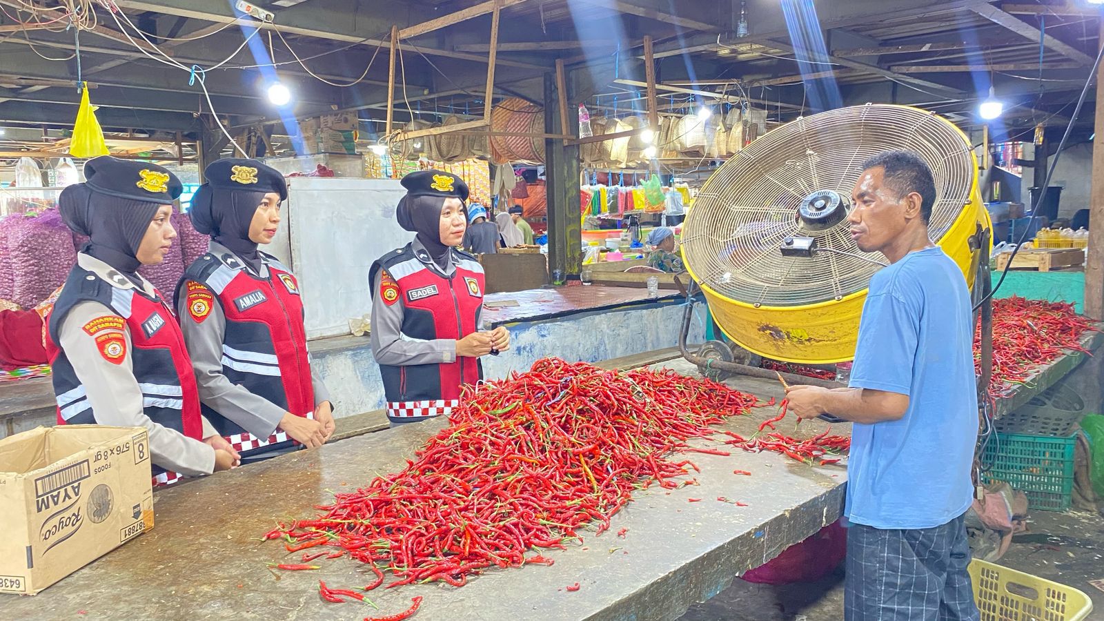 Dalam patroli tersebut, para Polwan tidak hanya melakukan pemantauan situasi, tetapi juga menyempatkan diri berdialog langsung dengan para pedagang dan pengunjung pasar.