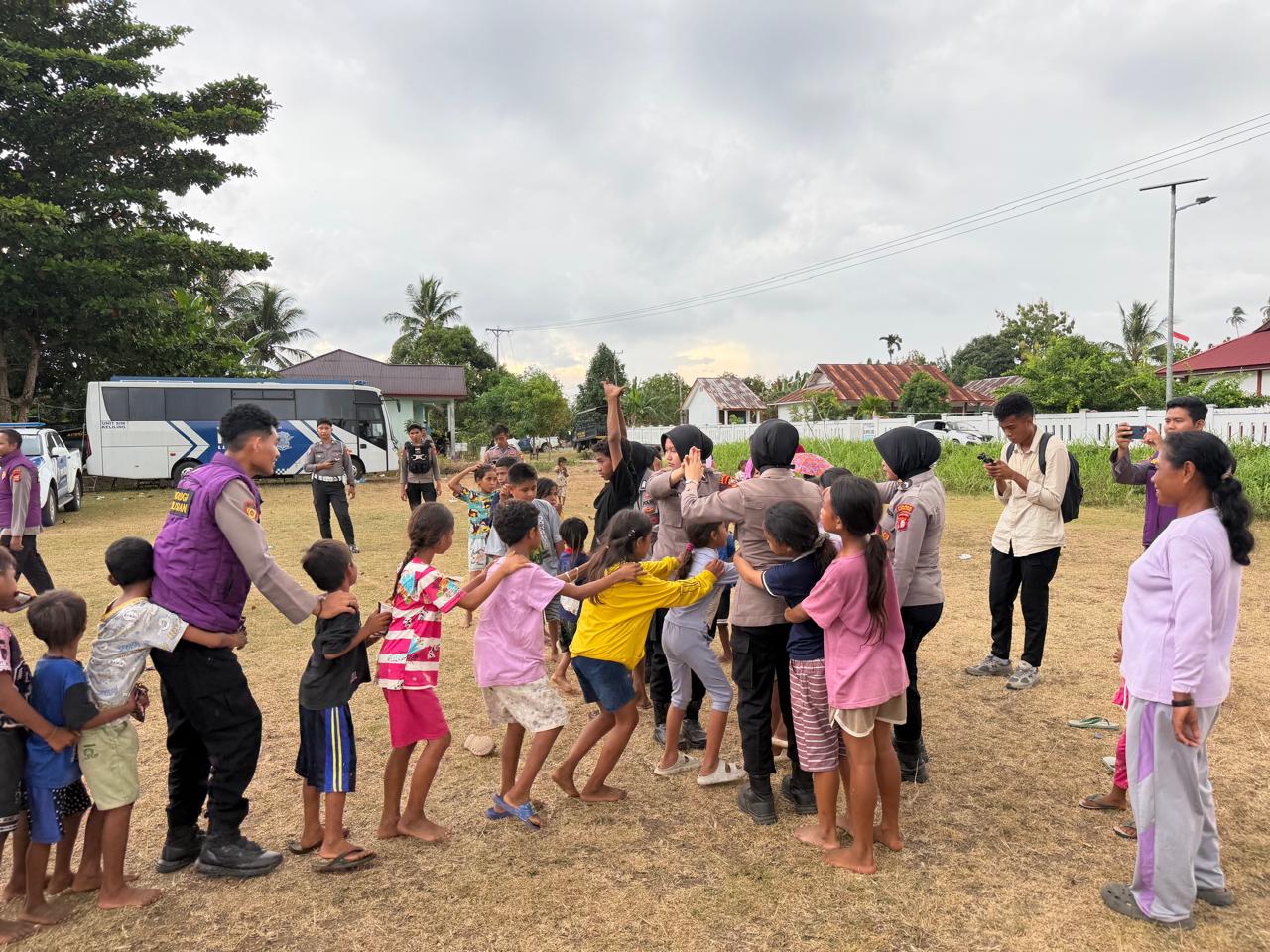 Pesan Harapan dari Kapolres Di sela-sela kegiatan, Kapolres Halmahera Tengah menyampaikan bahwa kehadiran Polri bukan sekadar untuk pengamanan fisik, tetapi juga untuk menyentuh aspek psikologis warga, terutama anak-anak.