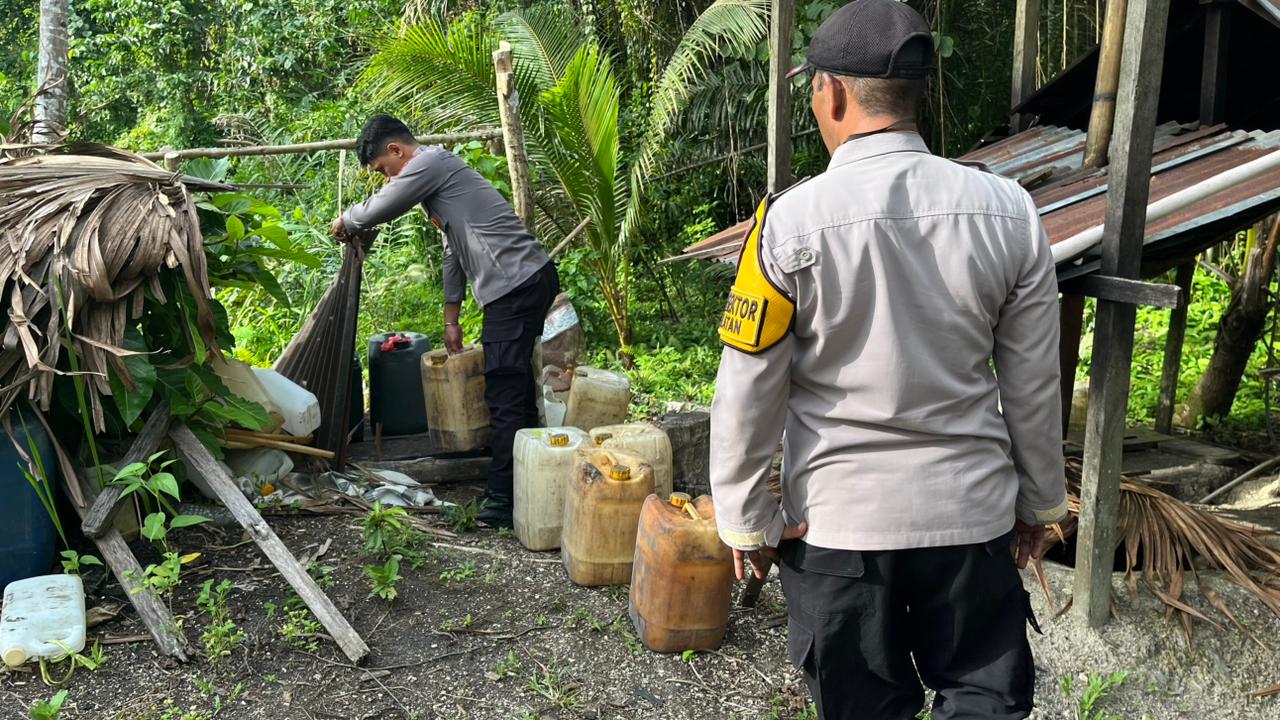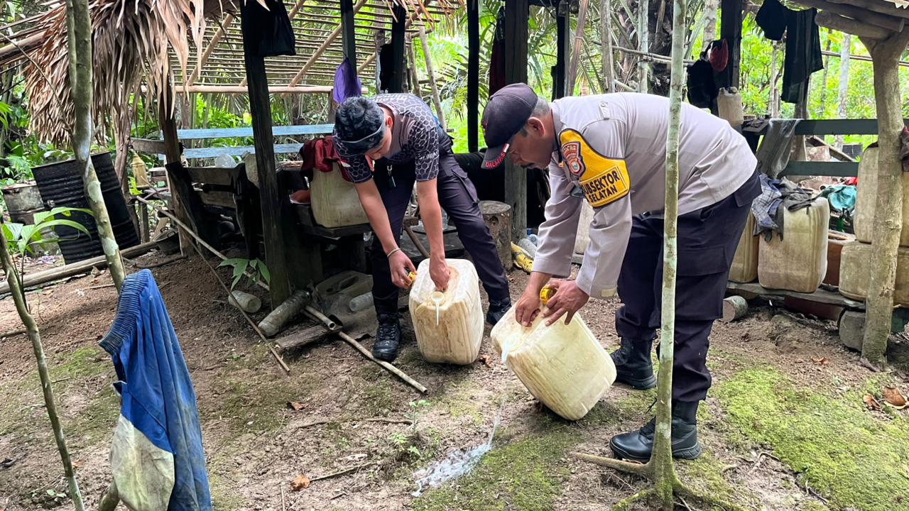 Menindaklanjuti laporan tersebut, petugas menuju lokasi dan menemukan tempat produksi miras tradisional cap tikus dengan barang bukti sebanyak 50 liter.