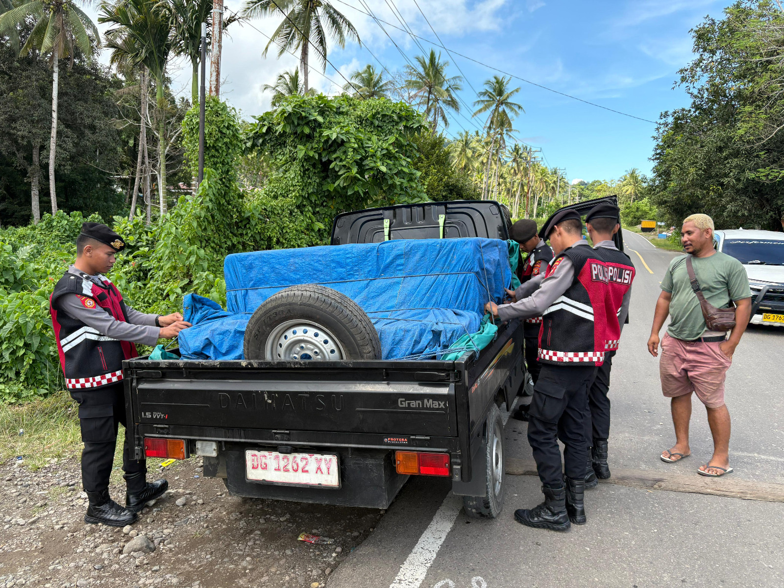 Guna mengantisipasi potensi gangguan keamanan akibat peredaran minuman keras (miras), jajaran Polresta Tidore menggelar operasi gabungan di Pos Lintas Desa Kusu, Kecamatan Oba Utara. Kegiatan ini digelar secara intensif pada Minggu (10/8) kemarin, dengan memeriksa seluruh kendaraan yang melintas, termasuk pemeriksaan mendalam terhadap barang bawaan penumpang.