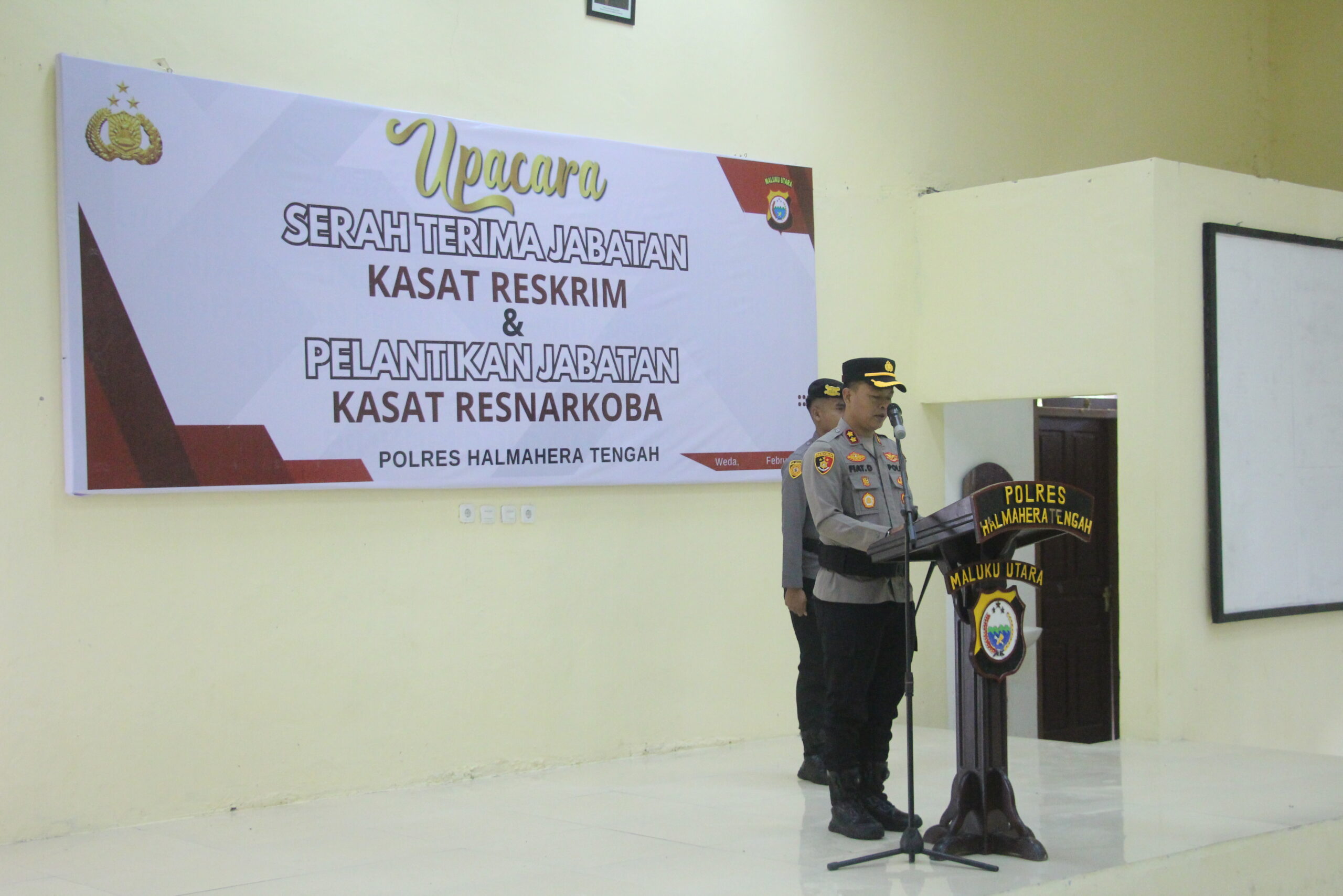 Halmahera Tengah – Pada hari Rabu, 18 Februari 2026 pukul 08.00 WIT, bertempat di Aula Fagogoru Polres Halmahera Tengah, telah dilaksanakan Upacara Serah Terima Jabatan (Sertijab) Kepala Satuan Reserse Kriminal (Kasat Reskrim) dan Pelantikan Jabatan Kepala Satuan Reserse Narkoba (Kasat Resnarkoba).