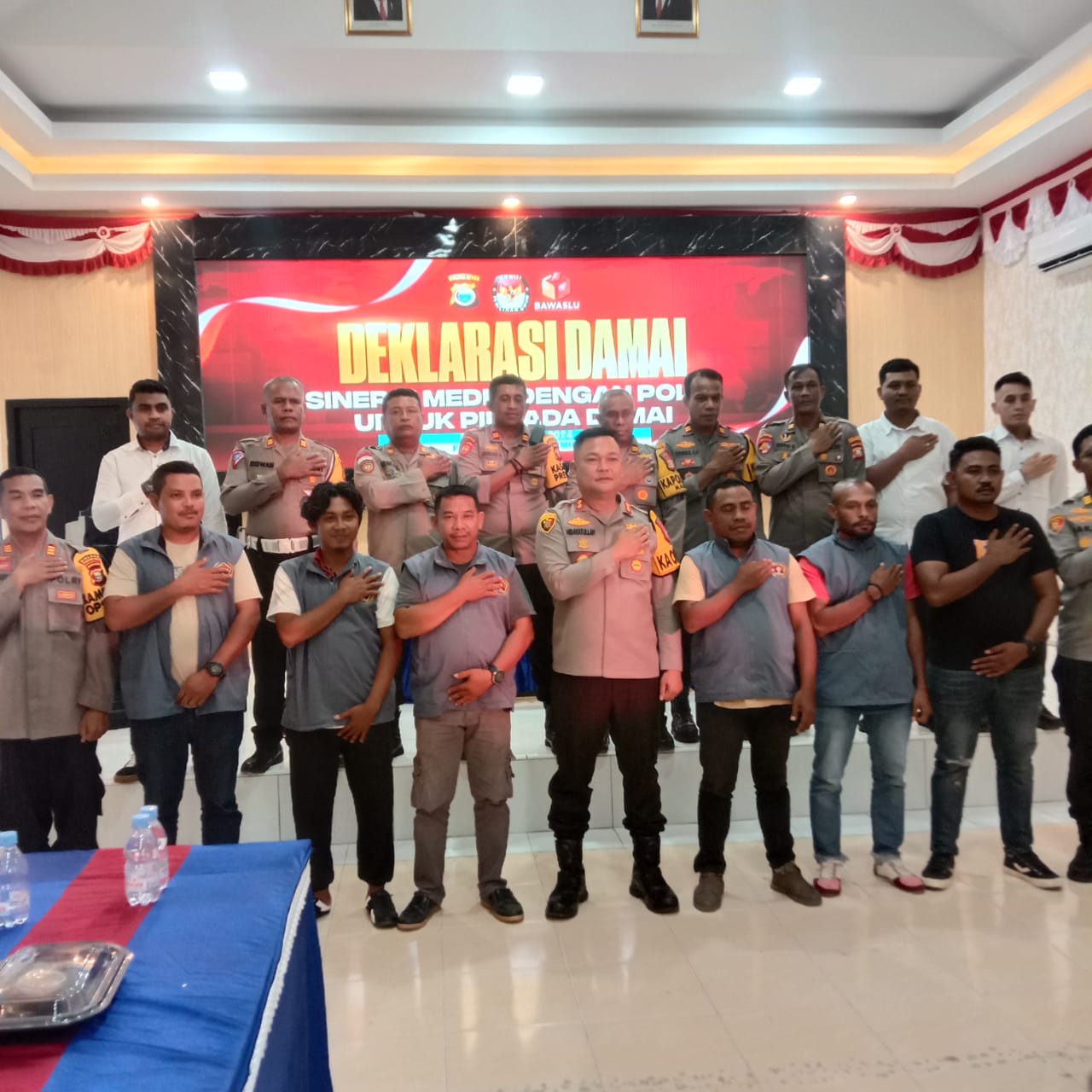Kepolisian Resor Halmahera Timur melaksanakan kegiatan Penandatanganan dan Deklarasi Damai Sinergi Media dengan Polri untuk Pilkada Damai Kabupaten Halmaheta Timur, yang bertempat di Aula Mapolres Haltim, Senin (7/10) Lalu